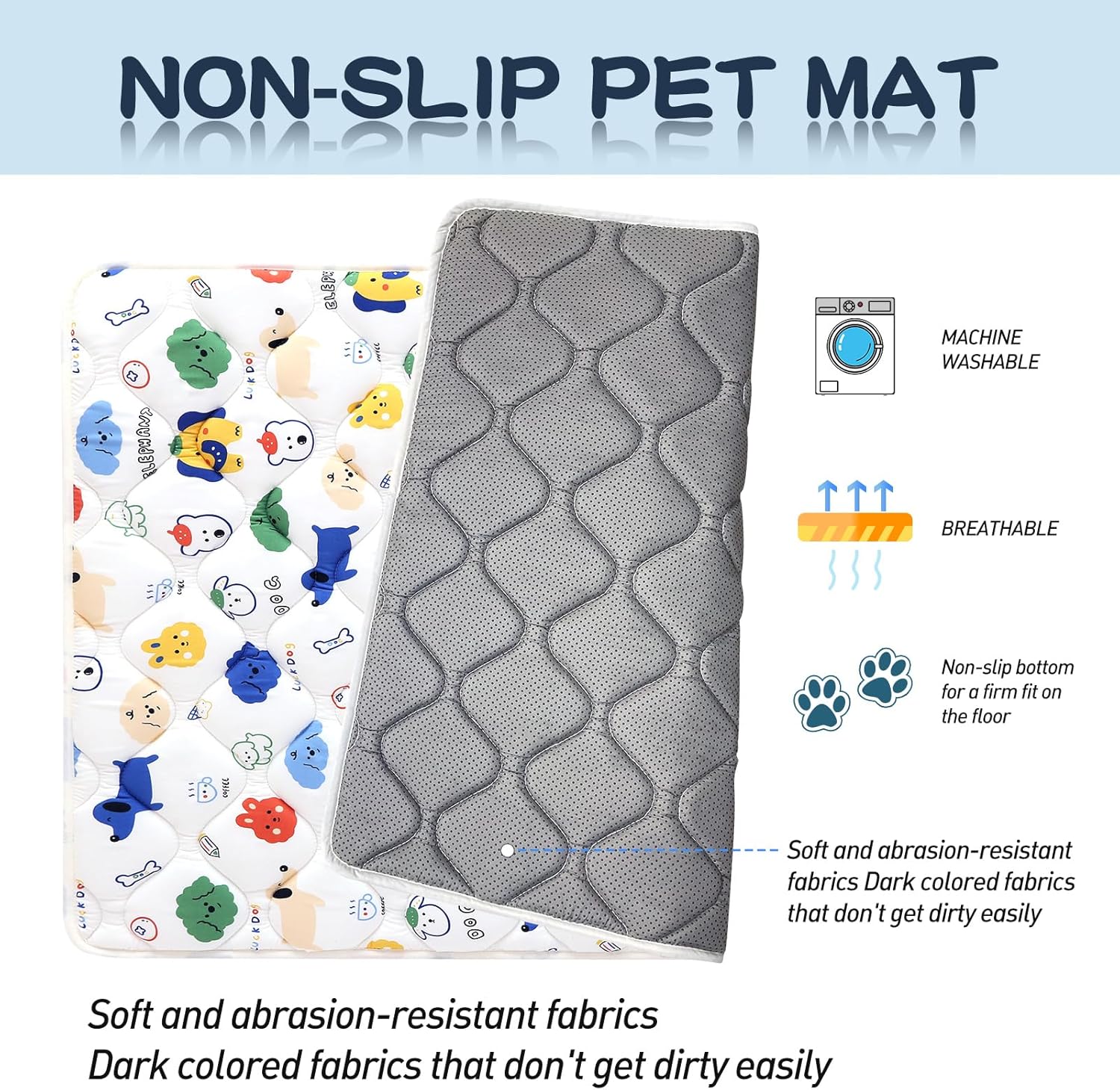• Non-Slip Design: This dog mat equipped with upgrade anti-slip bottom, it can keeps the mat in position and prevents moving and shifting when your lovely pet during a nap or playtime, make your lovely pets feel safe