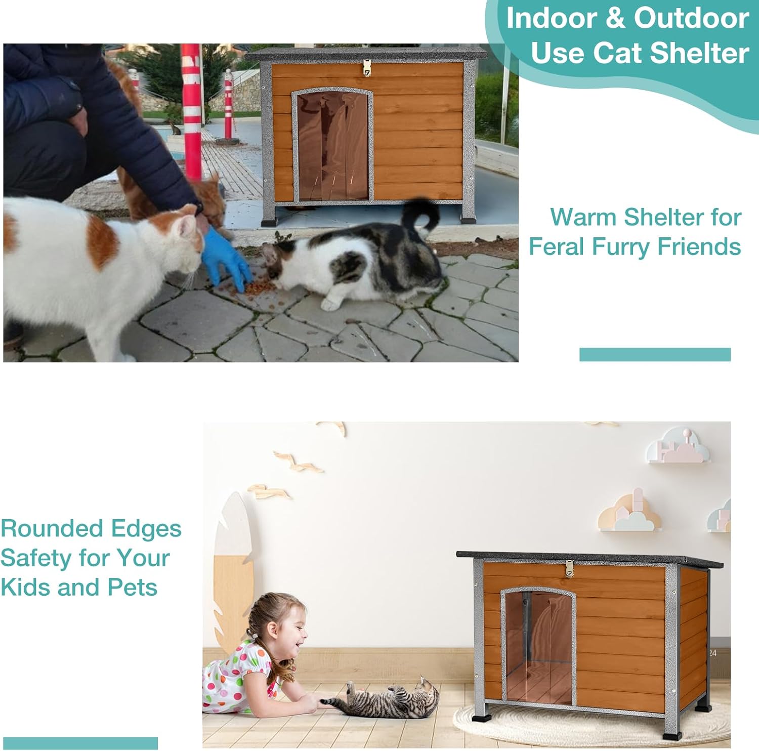 Indoor Outdoor Dog House,Anti-Chewing Iron Frame Dog Kennel,Wood Warm Pets Home,Weatherproof Outside Shelter for Feral Animal 33.5" (L) X 22" (W) X 25.2" (H) Brown