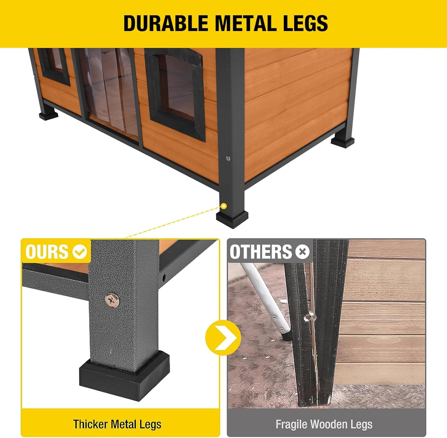 • Strong & Durable: Strong & sturdy for long-lasting protection. Our dog house Combine with solid wood and UNIQUE all-around stronger iron frame, prevent destruction and chewing from animals.