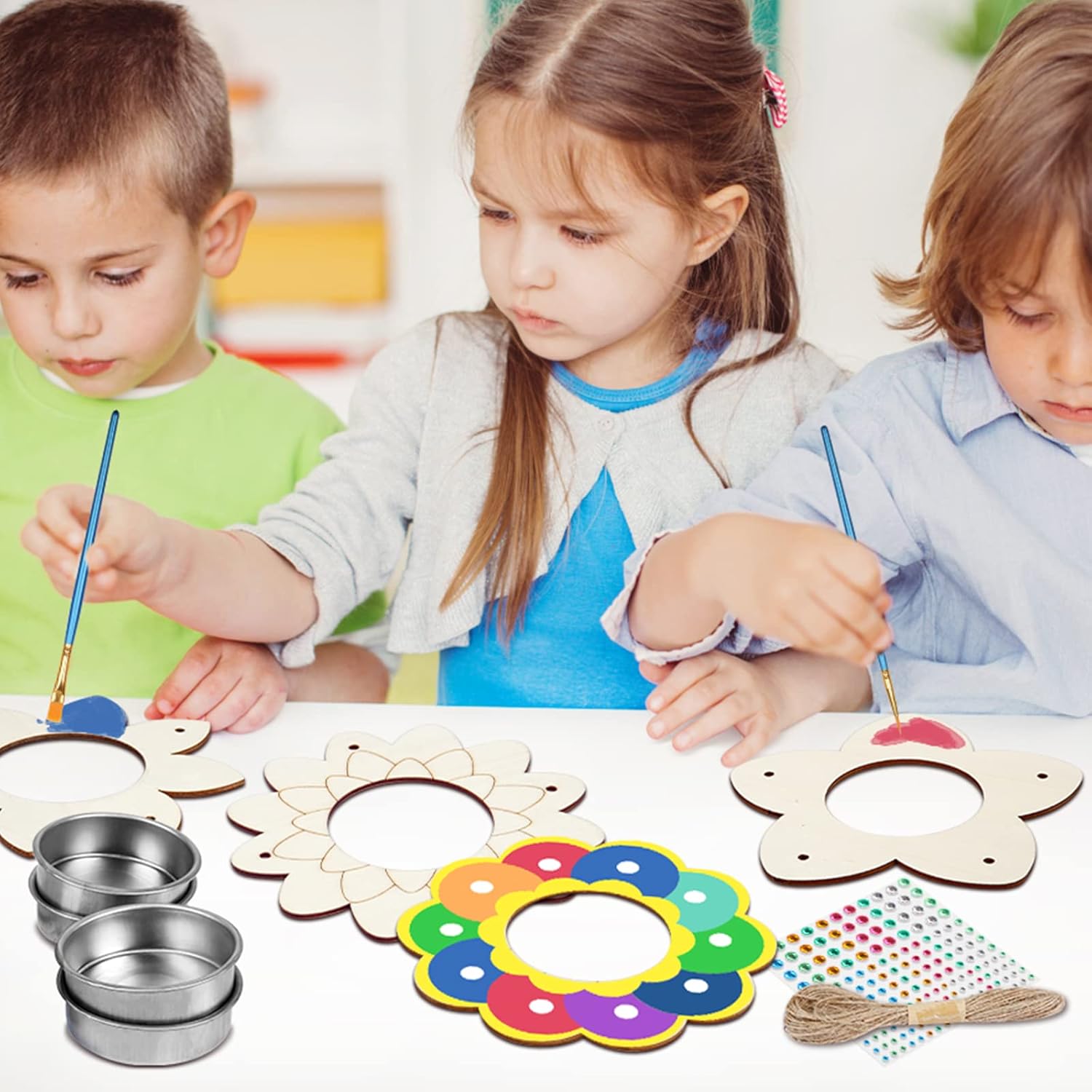- Fun Arts and Crafts Project for Kids: Design and color the flower-shaped wood chips can stimulate children's creativity and hands-on ability, and improve children's hand-eye coordination. The process of parents accompanying their children to do handicrafts can also enhance the parent-child relationship.By making bird feeders, children can learn about animals and nature.