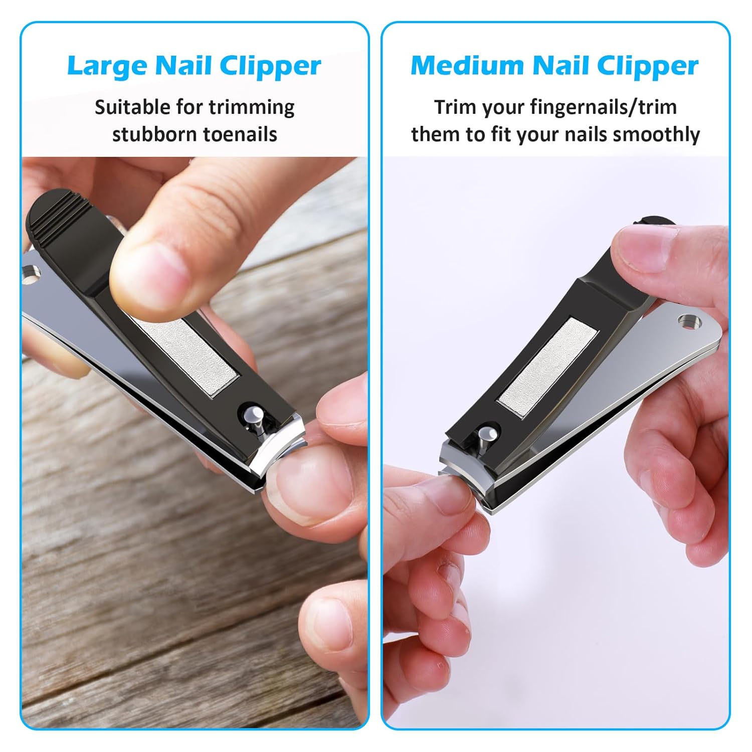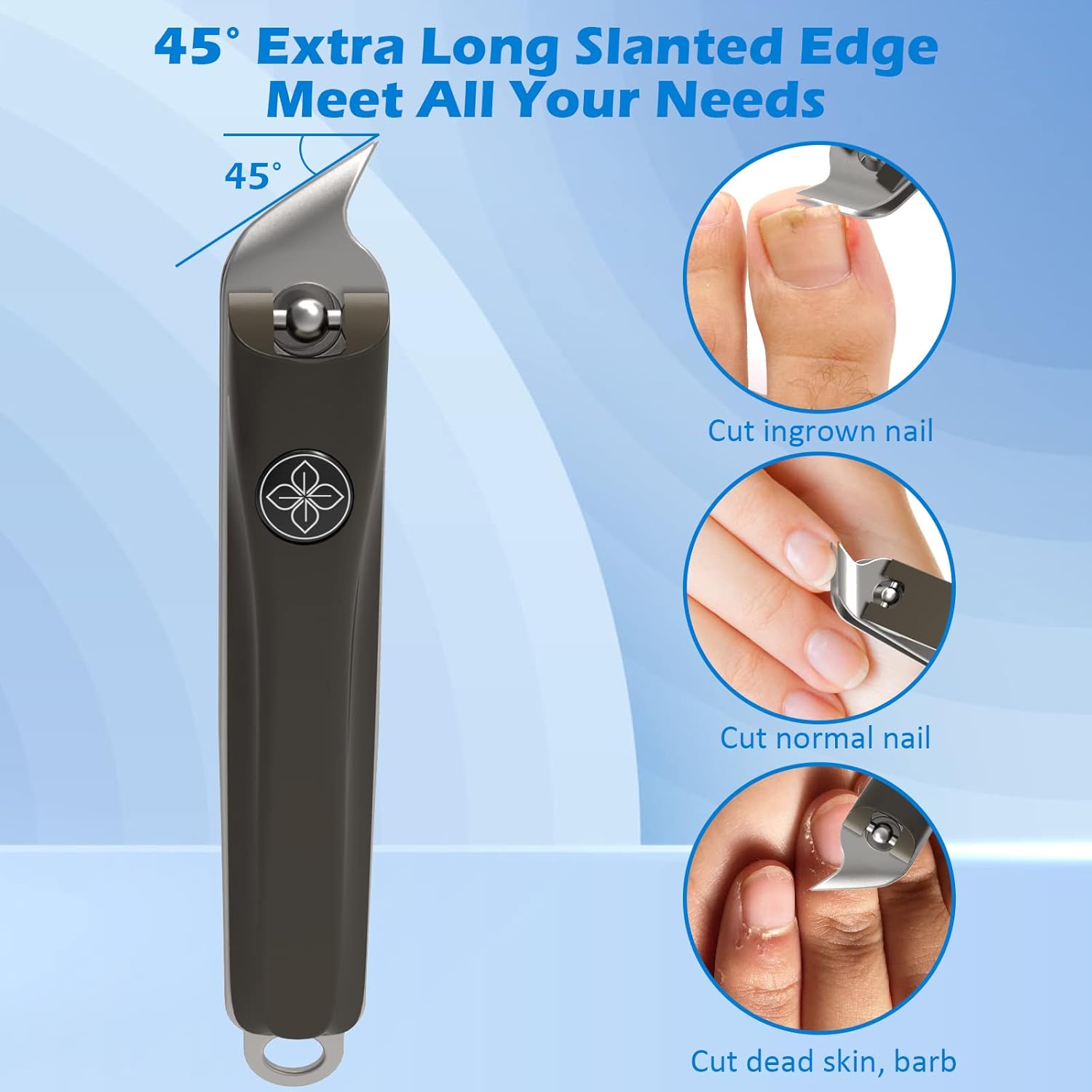 • Complete nails Care Set: This nail clippers set includes a large curved edge toenail clipper, a small curved edge fingernail clipper, and a slant edge ingrown nail clippers. It covers all your needs for toenail, thick nails, ingrown nails, and fingernail trimming.