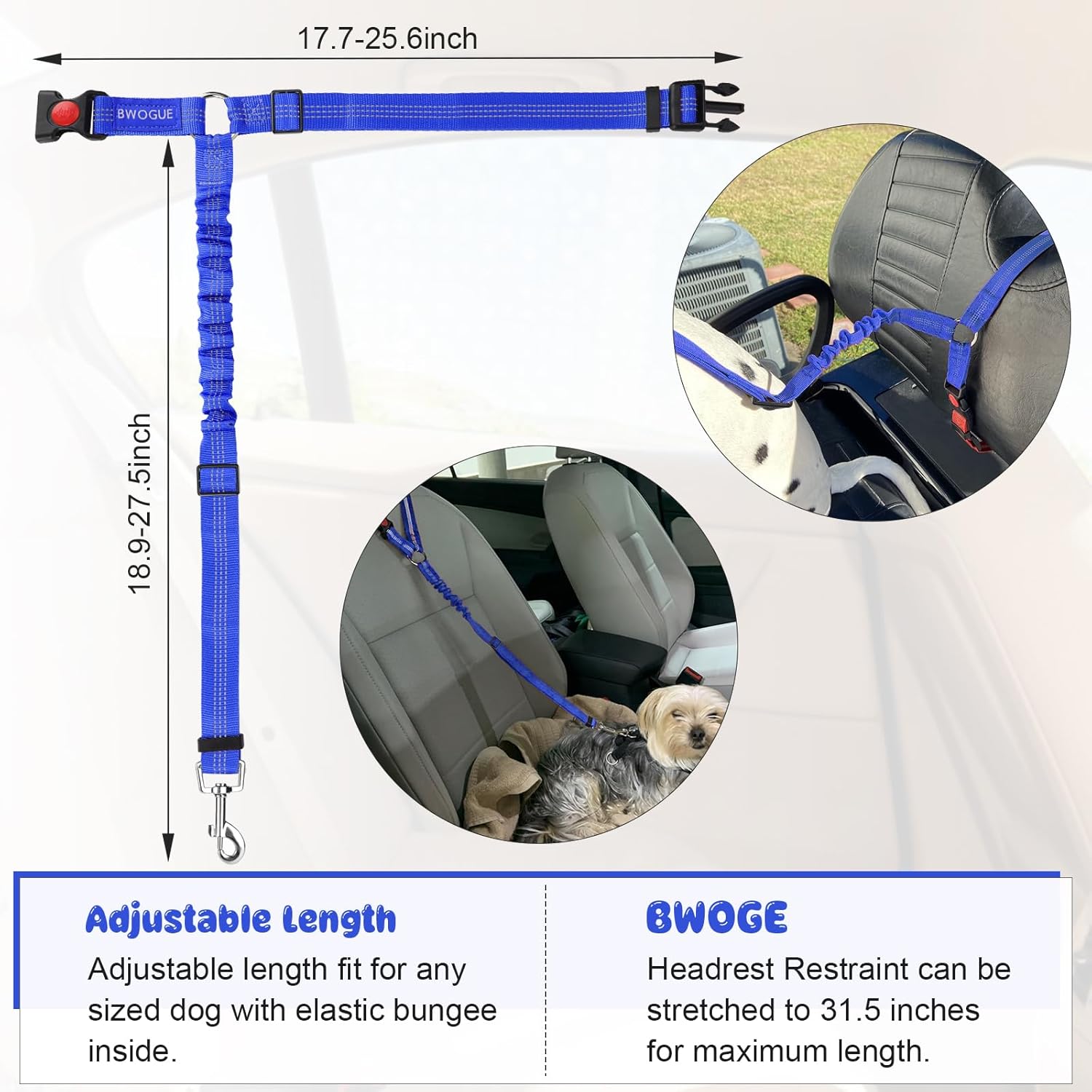 BWOGUE Pet Dog Cat Seat Belts, Car Headrest Restraint Adjustable Safety Leads Vehicle Seatbelt Harness (1 Pack)