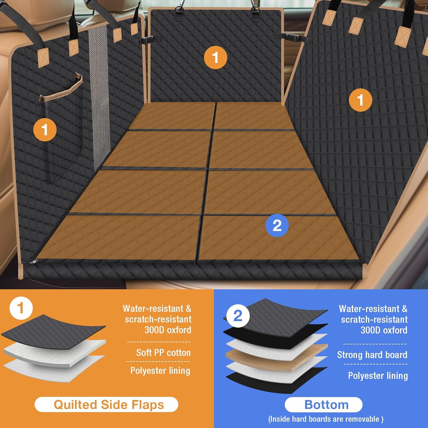 • 【No More Pets Falling】The back seat cover for dog features sturdy bottom board, which is strong enough to support your dog with dog safety seat belt to prevent your pet from sliding during drive.