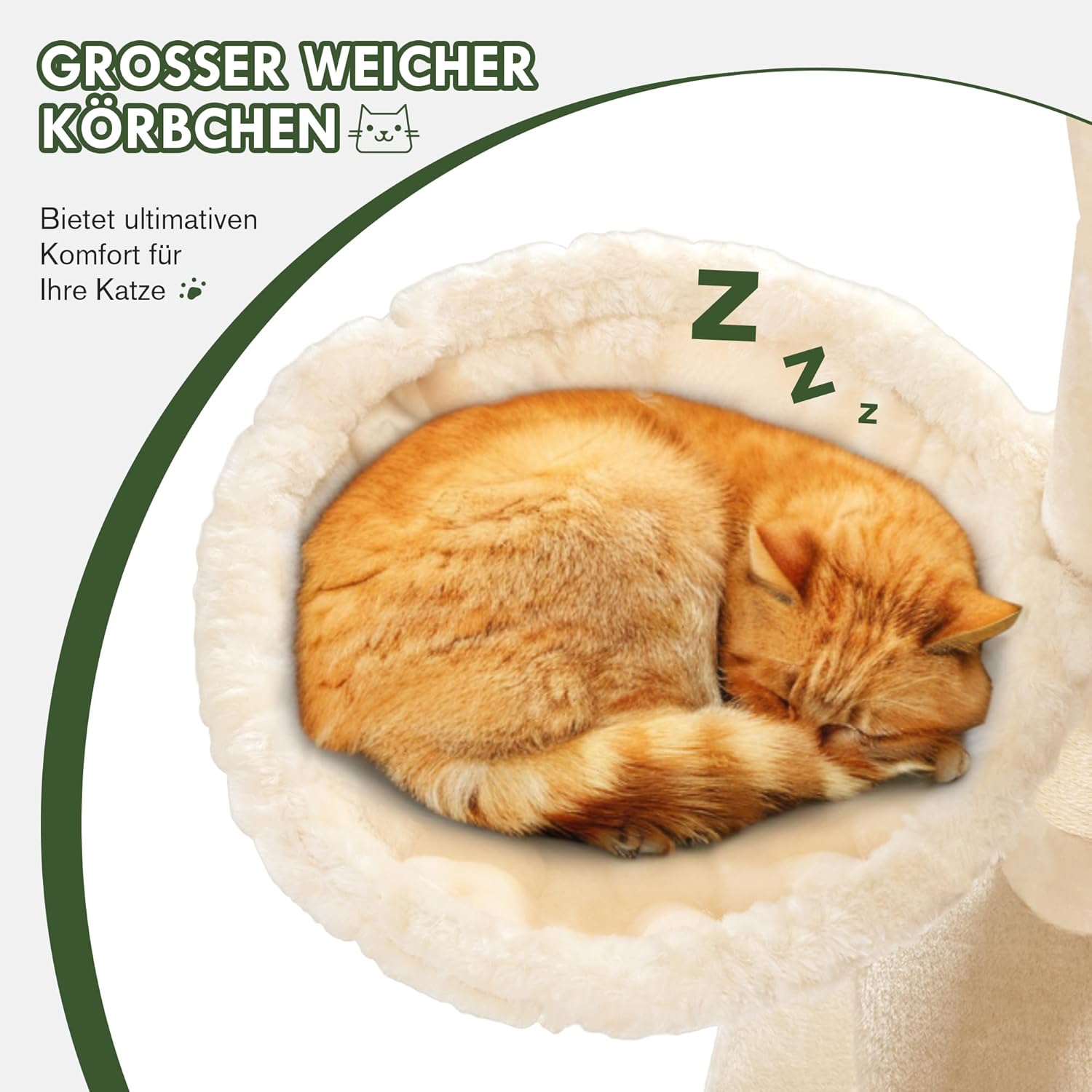 • Premium Material: The multilevel cat tree is crafted out of a CARB-certified P2-grade particle board and plush, the reinforcement posts are covered with natural sisal rope, so that cats can comfortably sharpen their claws instead of scratching the sofa