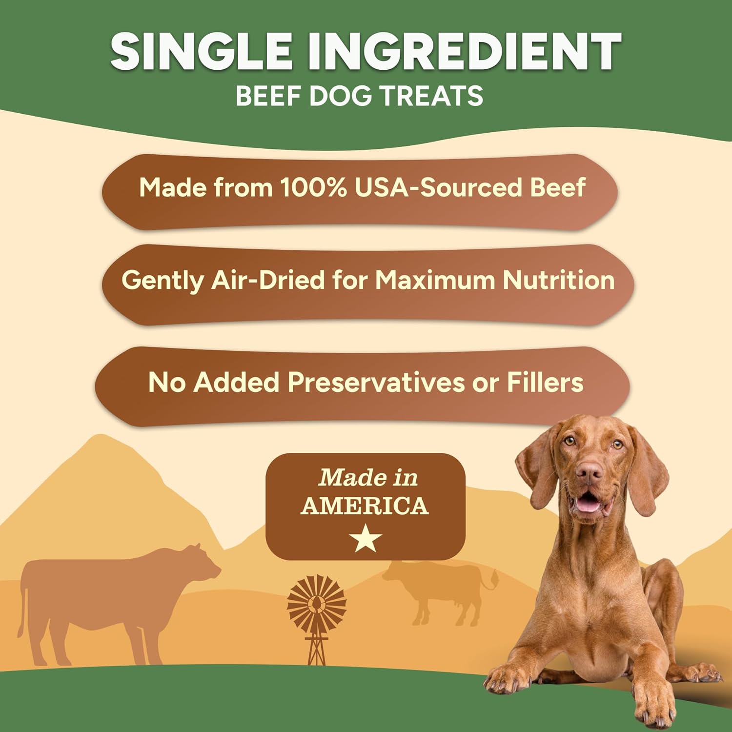 • MADE IN USA FROM FAMILY-OWNED FARMS: Sourced exclusively from trusted family farms in the USA, our natural beef treats for dogs contain no preservatives, additives, or by-products—just clean, high-quality nutrition your pup deserves.