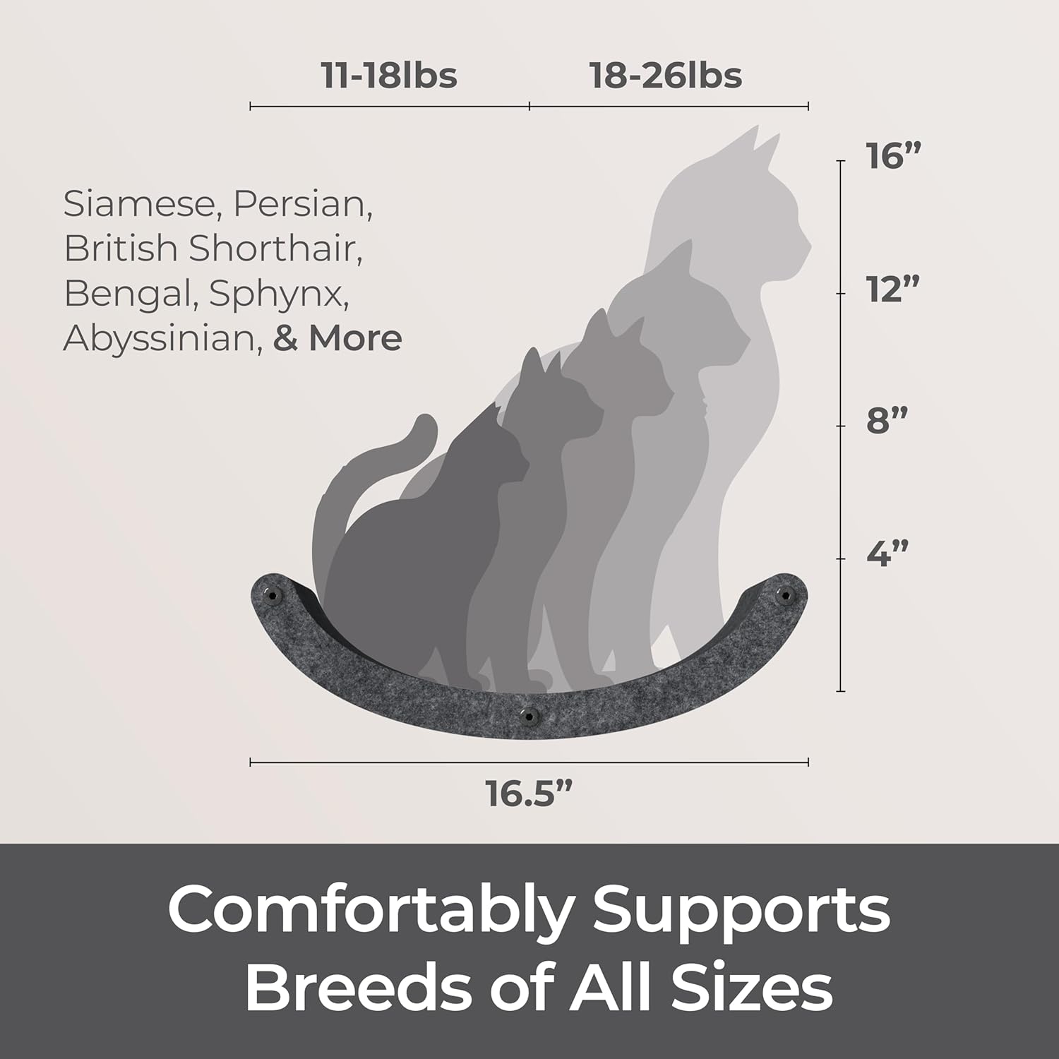 • Pawsitive Impact: Our wall mounted cat furniture is crafted with recycled P.E.T. felt materials, creating a strong, tactile and anti-slip felt to endure daily use. Our patent-pending design offers irresistible softness, perfect for face rubs and head bumps.
