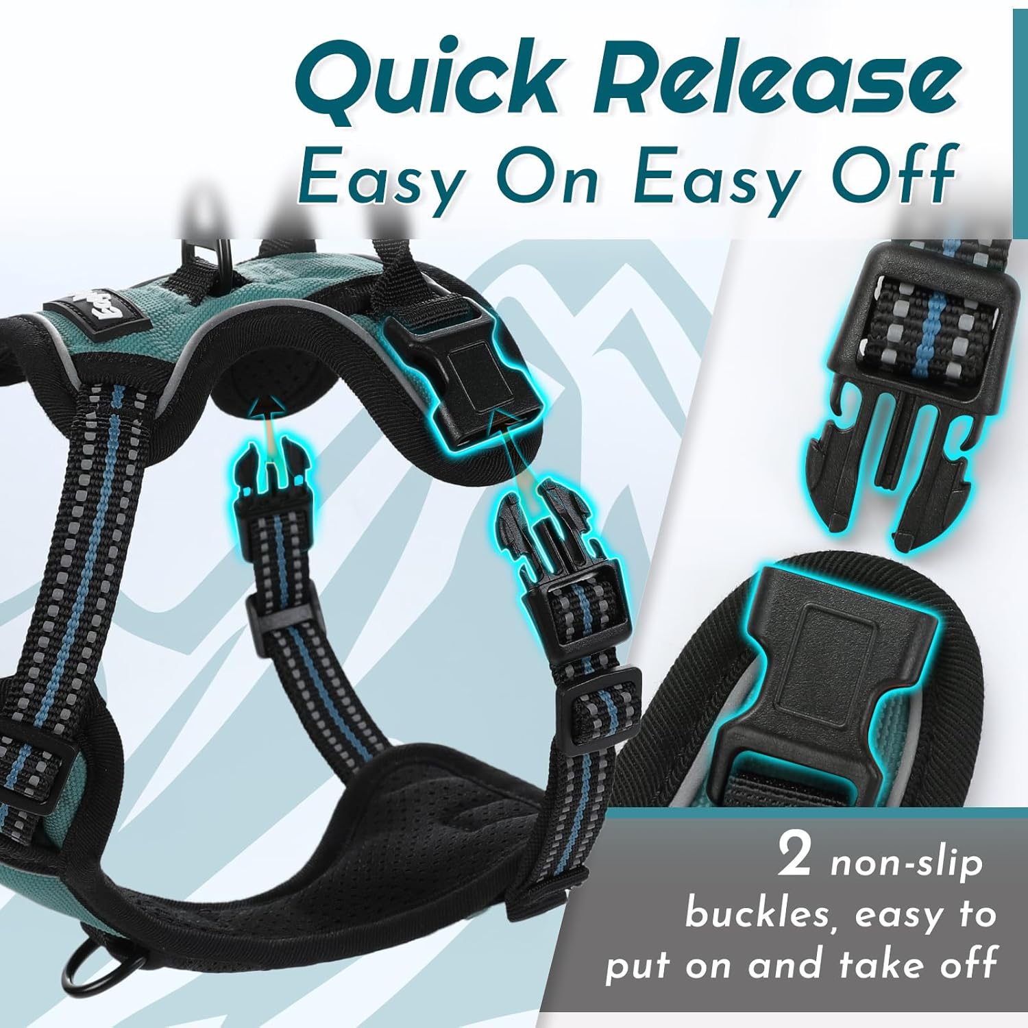 • Easy to Use: Our dog harness is designed with 2 quick-snap buckles for simple wearing and 4 adjustable sliders at the neck and chest for a perfect fit. Just slip it over your dog's head, buckle it up, adjust the straps, and you're ready to go in seconds