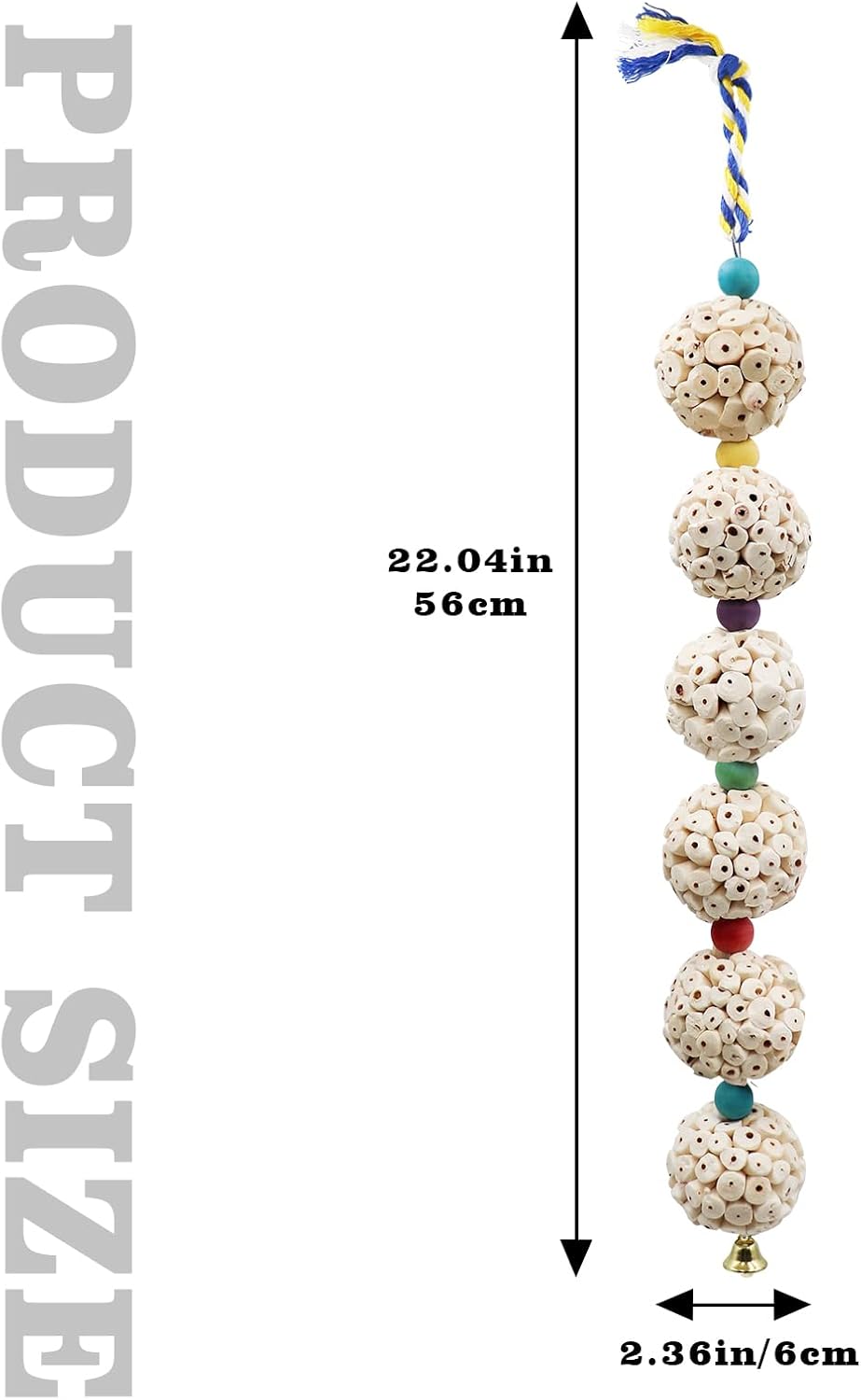 • Compact and Convenient Design: Measuring 2.36 inches in diameter and 22 inches in total length, this bird toy boasts a compact yet engaging design. The colorful cotton rope on top allows easy hanging, ensuring quick and convenient installation and removal.
