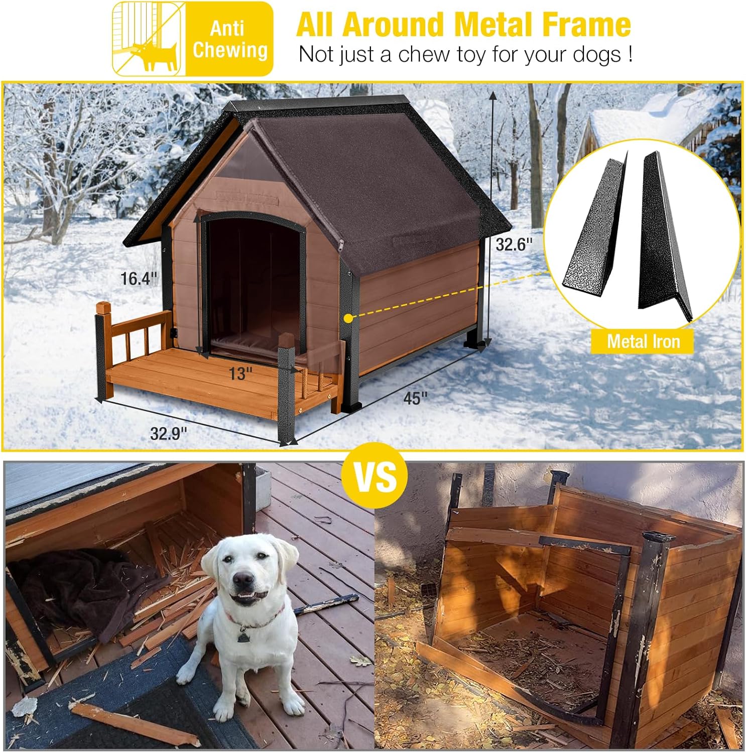 • Perfect Design For Indoor Outdoor: This outdoor dog house is leak-proof and the roof is slanted so rainfall will not sit on top. It will survive in heavy rain/snow to keep your dog warm and dry inside
