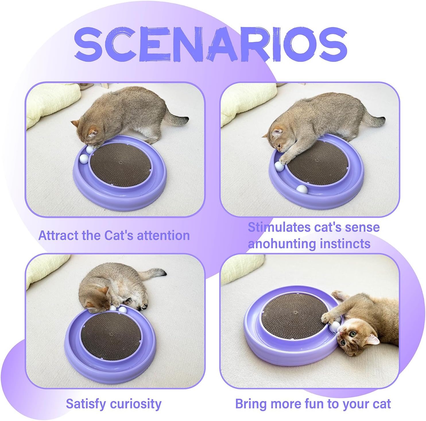 Interactive Cat Ball Track Toy for Indoor Cats, Cat Scratching Board & Exercise Set for Bored Indoor Adult and Kitten Mental & Physical Stimulation, with Spare Ball to Prevent Loss (Purple)