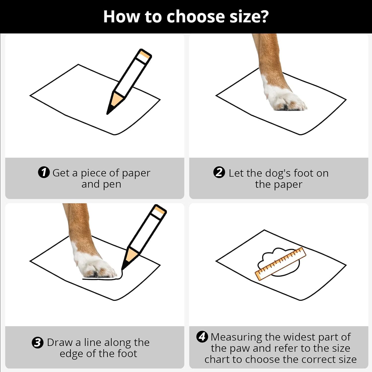 • 【Size 6】: 2.55''x2.95''(W*L).for 52-70(lbs).Great for all kinds of dogs.Place your pet's paws on paper; Mark the width of the paws, including the toes and nails,Except for the hair;Please refer to the picture size chart to choose the right size for your puppy.
