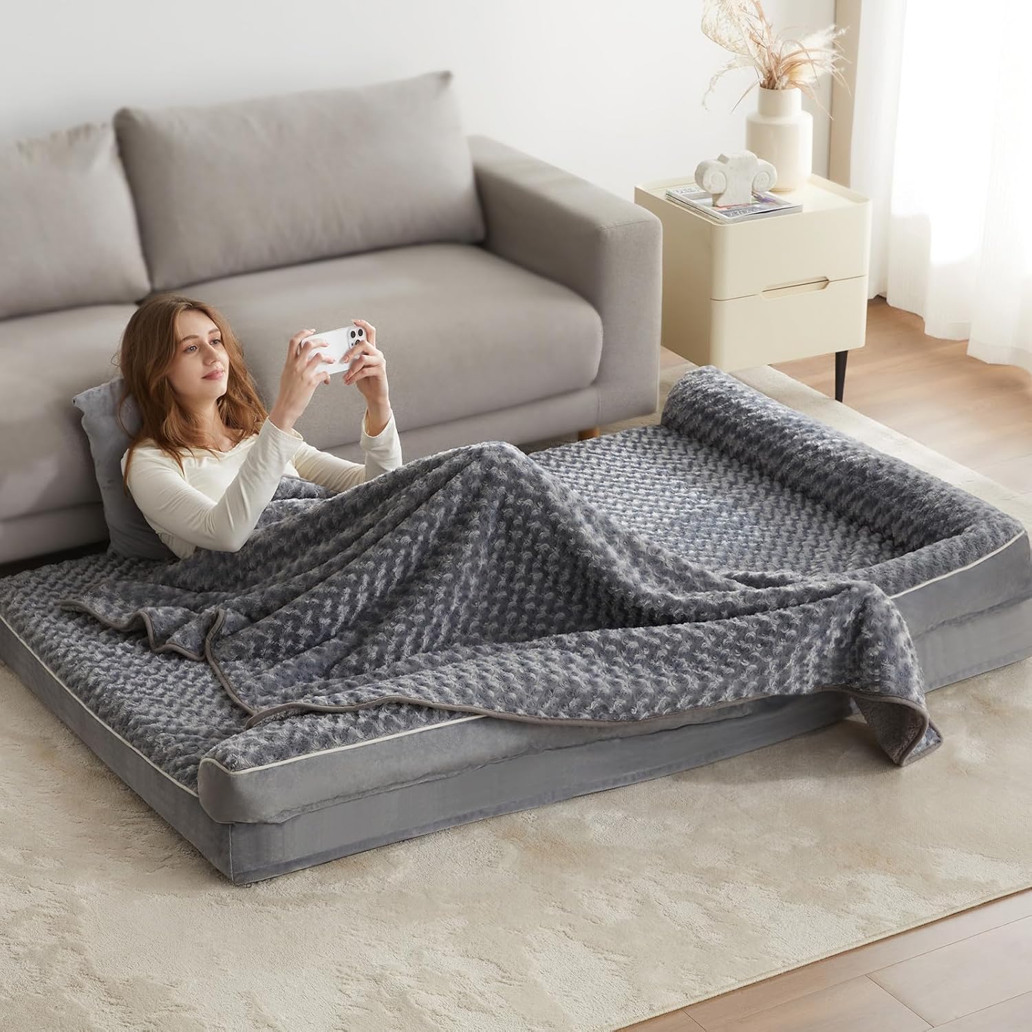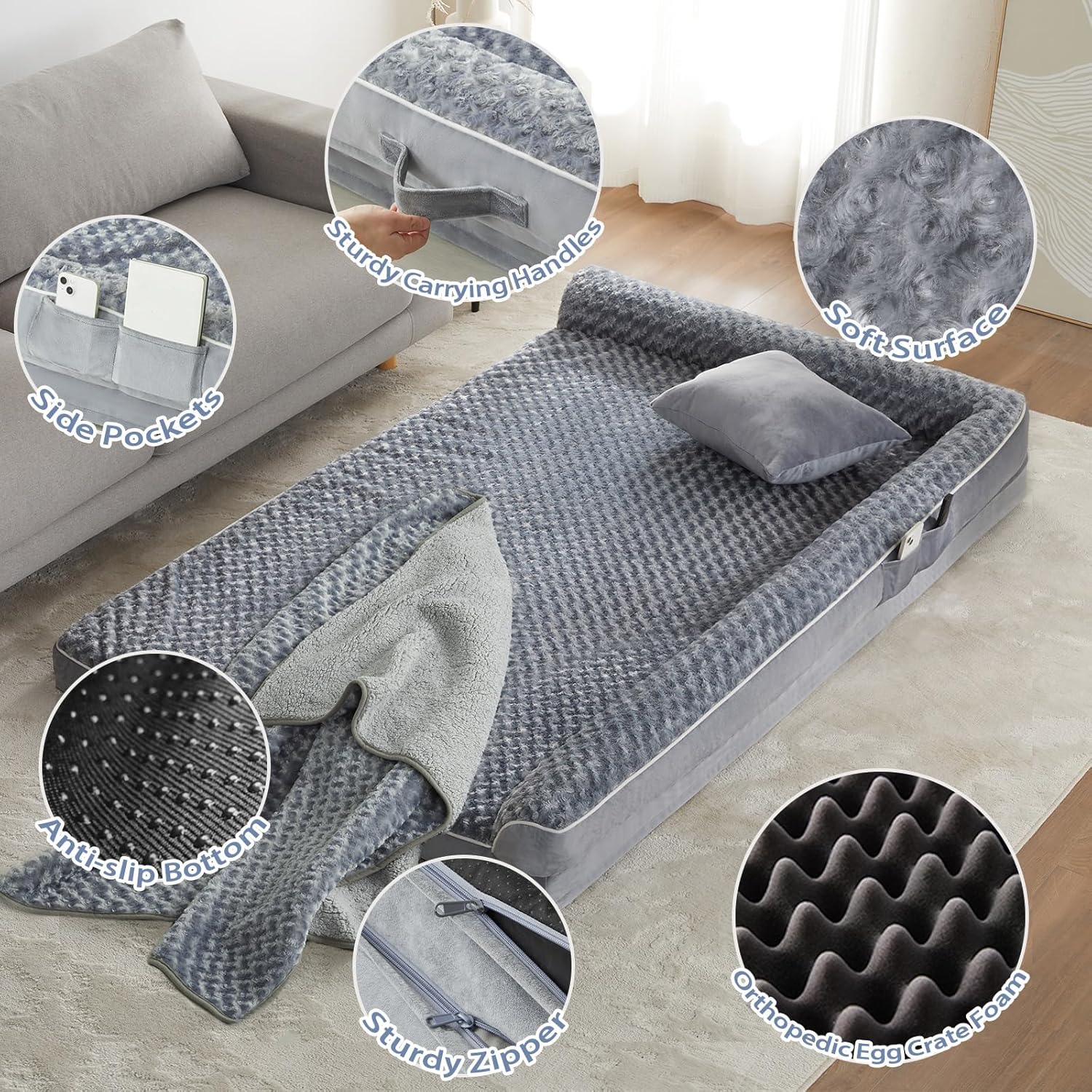 • SIZE(DOG BEDS FOR EXTRA DOGS): The dimensions of this XXL+ dog bed are 71“ x 46" x 7.5". XXL+ dog beds for extra large dogs up to 150 lbs. This orthopedic dog couch will give your pet more space and allow your friend to stretch out on the bed.