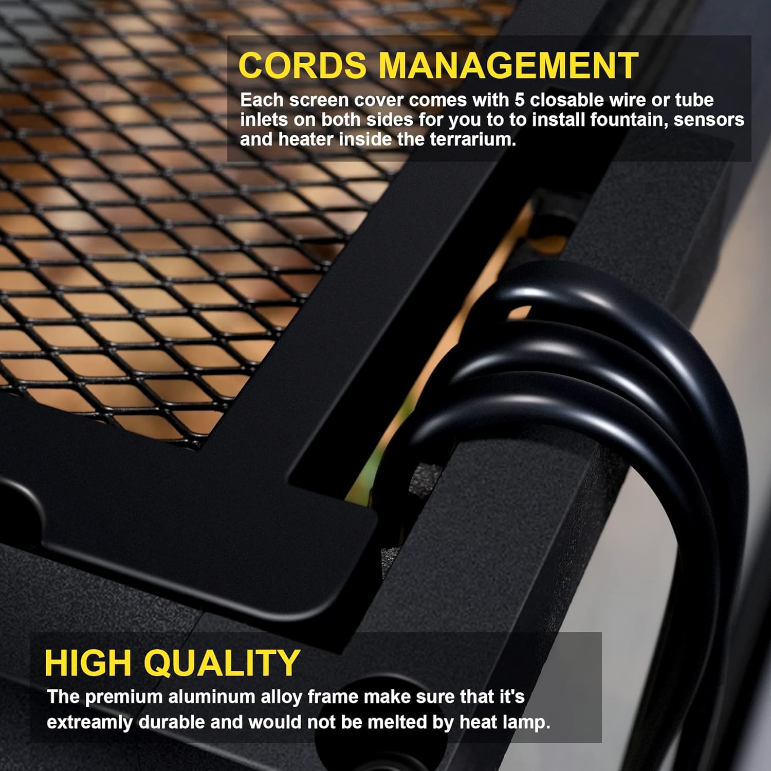• - Cords Management:Each screen cover comes with 5 closable wire or tube inlets on both sides for you to to install fountain etc.