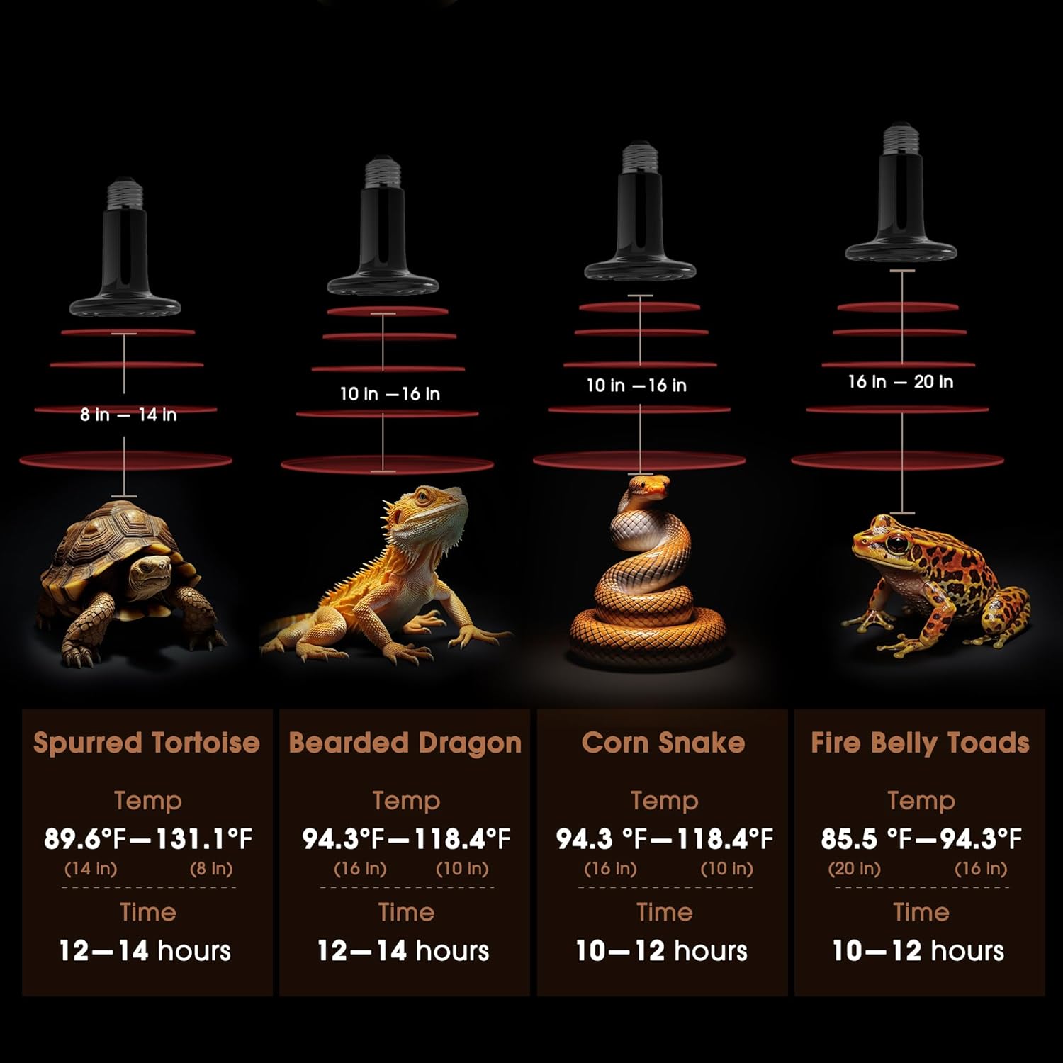 • 【Sun-like Warmth】Our innovative infrared reptile heat lamp bulbs emulate the comforting warmth of the sun, providing a cozy environment for your reptile pets and promoting their well-being.