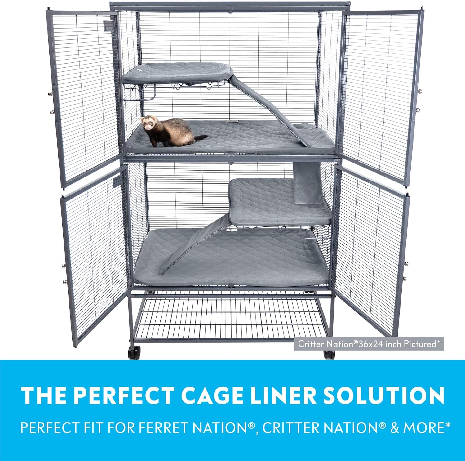• PERFECT FIT: Designed specially for use with the Ferret Nation and Critter Nation* double unit cage. A stretchy elastic bottom makes the liner easy to put on and secure over the trays, and two flexible wide straps reinforce the liner for a perfectly tight fit. The top pan includes a cut-out for the ramp opening. The ramp covers slide on to the ramps and are secured with a strong hook-and-loop (velcro) closure.