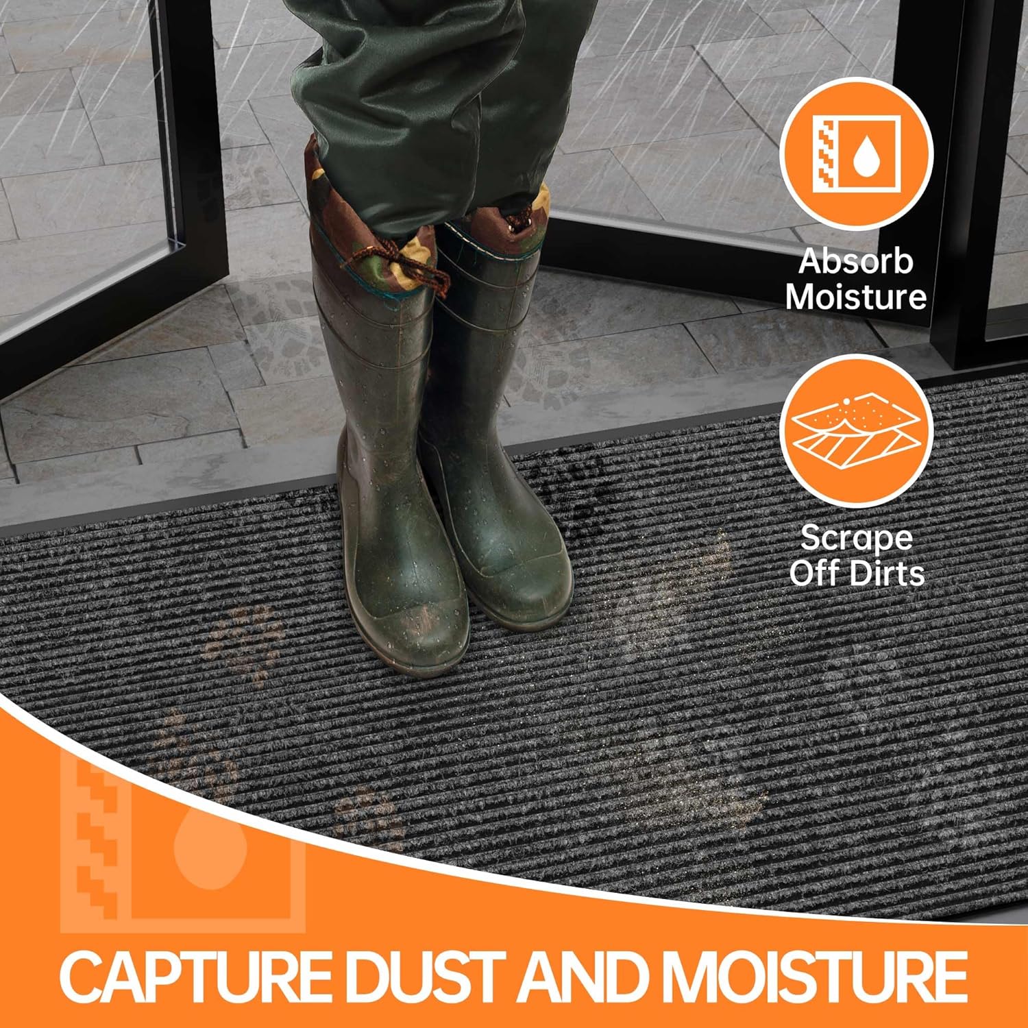 • Deep Grooves Capture Dirt and Moisture: Say goodbye to dirt and moisture tracked into your home. Our commercial door mat effectively captures dirt, mud and moisture from shoes, keeping your floors clean and protecting them from potential damage.