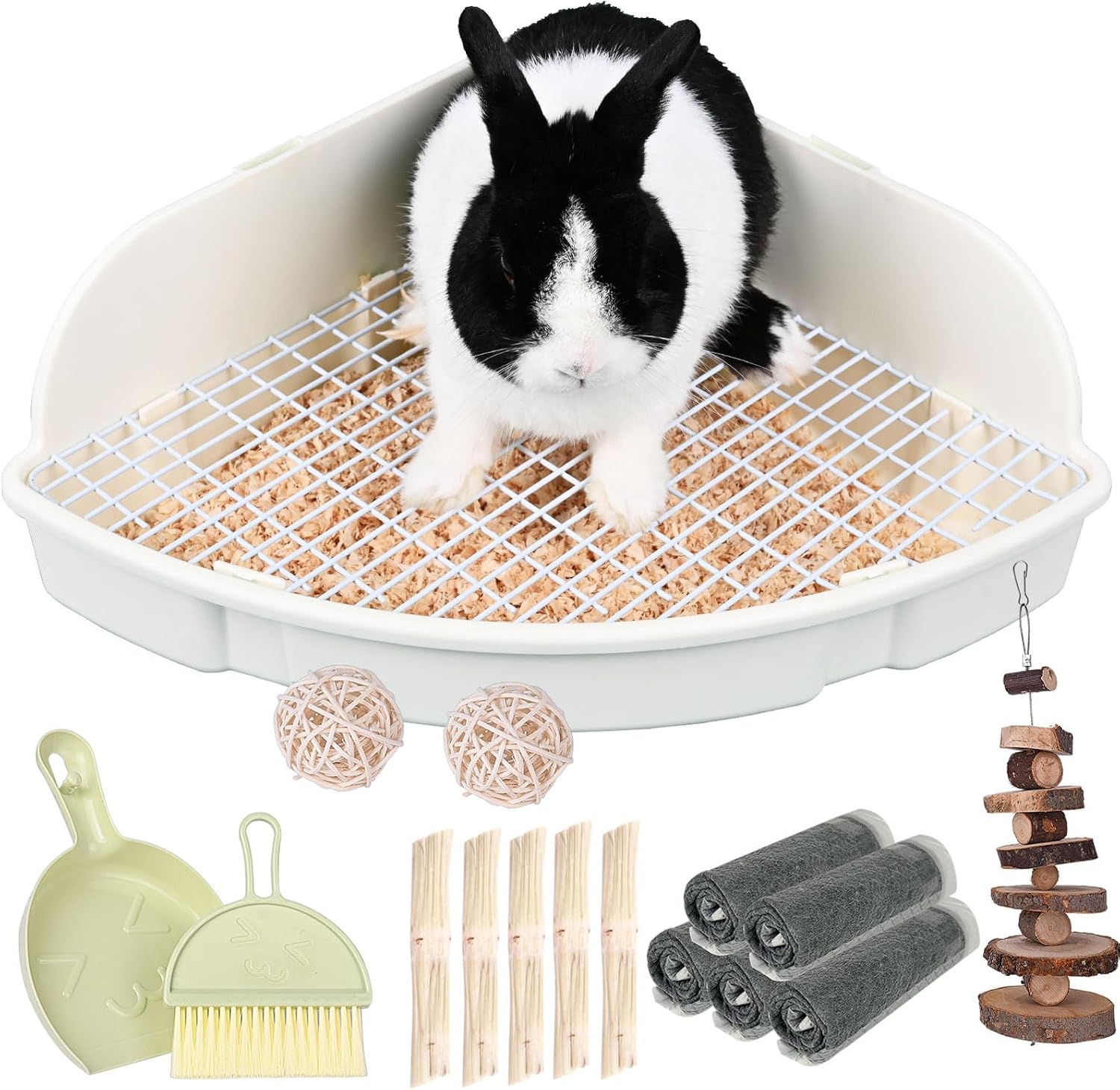 • 【Solid and Durable】 The corner litter box is made of high quality plastic and stainless steel grid, solid and durable enough to handle some chewing. The reinforced bottom design to withstand adult small animals of relatively large.