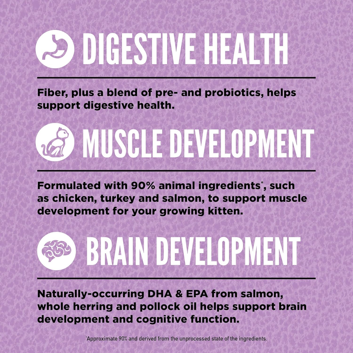 • Packed with 90 percent animal ingredients*, this high protein cat food contains the most succulent and nourishing parts of the prey to help your growing kitten thrive