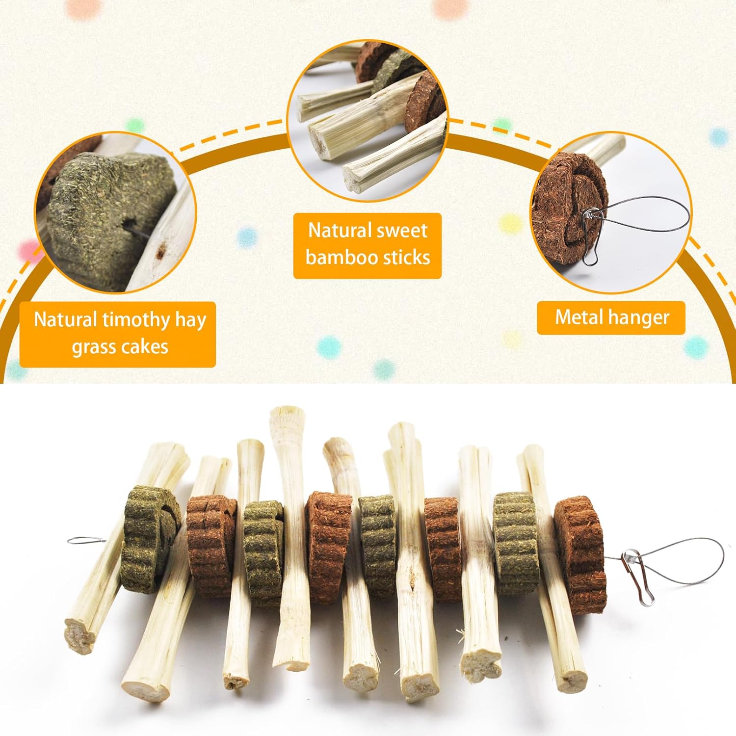 • 【Promote Digestion】Rabbit treats for teeth grinding are rich in vitamins, crude fiber,bunny chews hanging is easy for small animals to chew and digest,guinea pig treats bamboo can promote intestinal peristalsis,sweet bamboo and carrot taste can improve your pet's appetite.