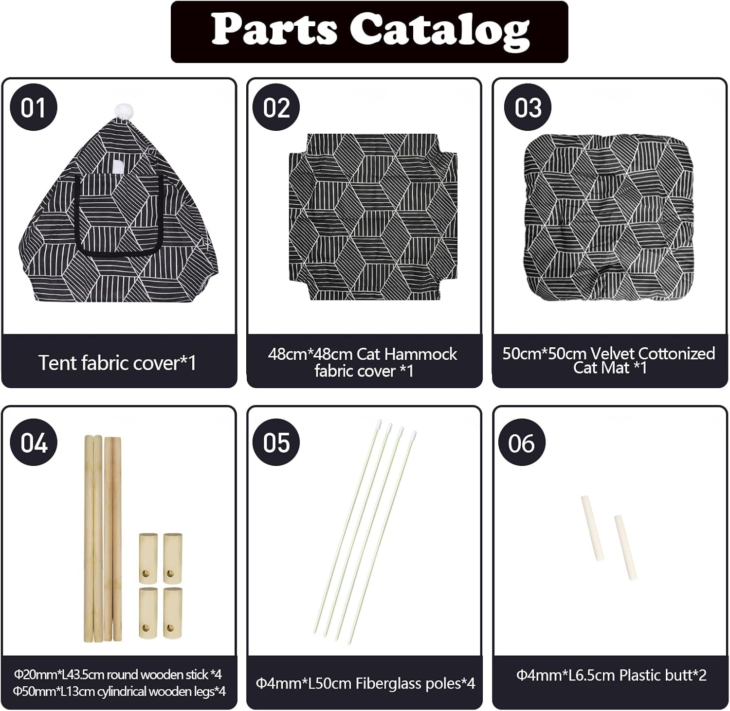 • PINE TREE MATERIAL FRAMEWORK: The supporting wooden poles of animal tents are made of polished natural wood. It is solid, healthy, safe, and safe. Make your beloved pet healthy sleep and suitable for Outdoor Cat TENTS for Indoor Cats.