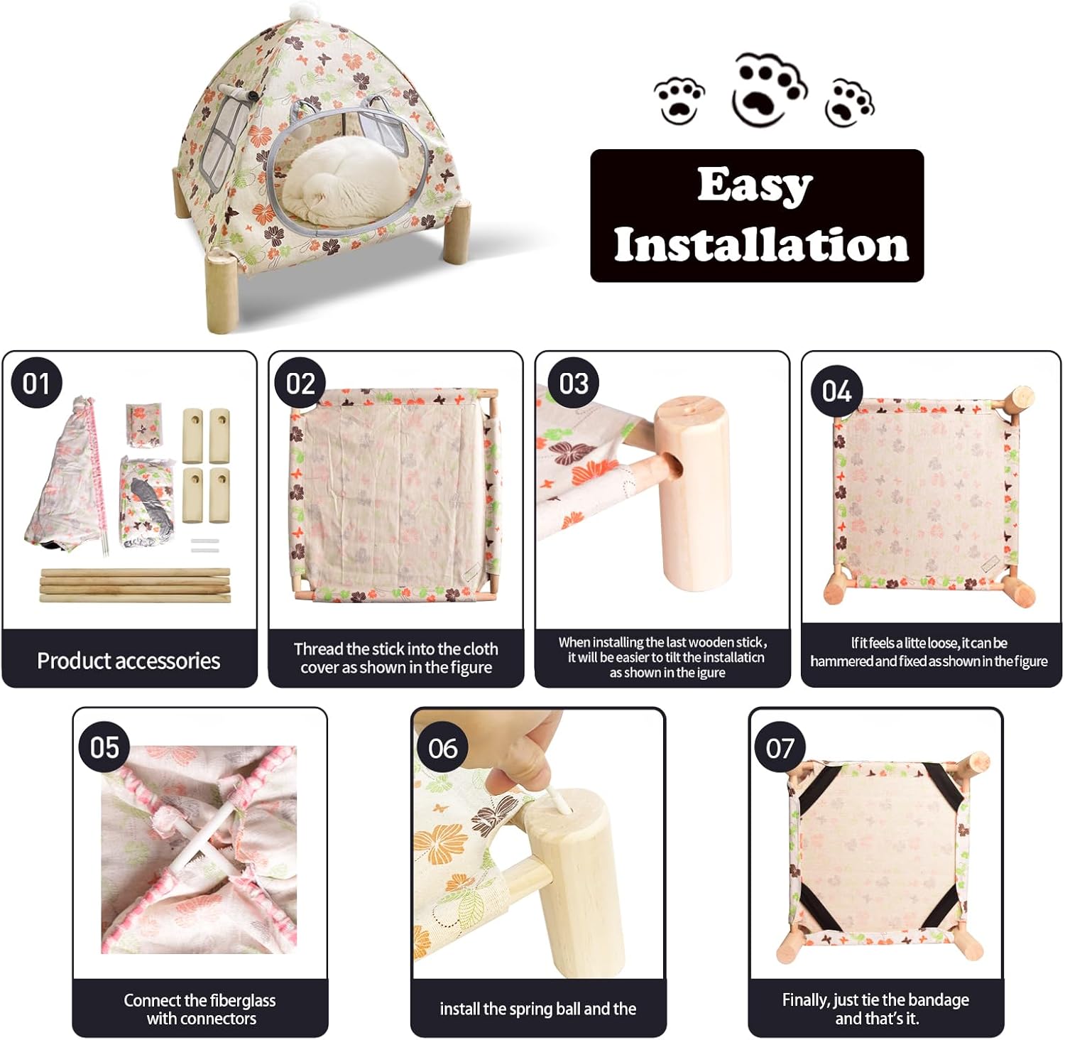 • PINE TREE MATERIAL FRAMEWORK: The supporting wooden poles of animal tents are made of polished natural wood. It is solid, healthy, safe, and safe. Make your beloved pet healthy sleep and suitable for Outdoor Cat TENTS for Indoor Cats.
