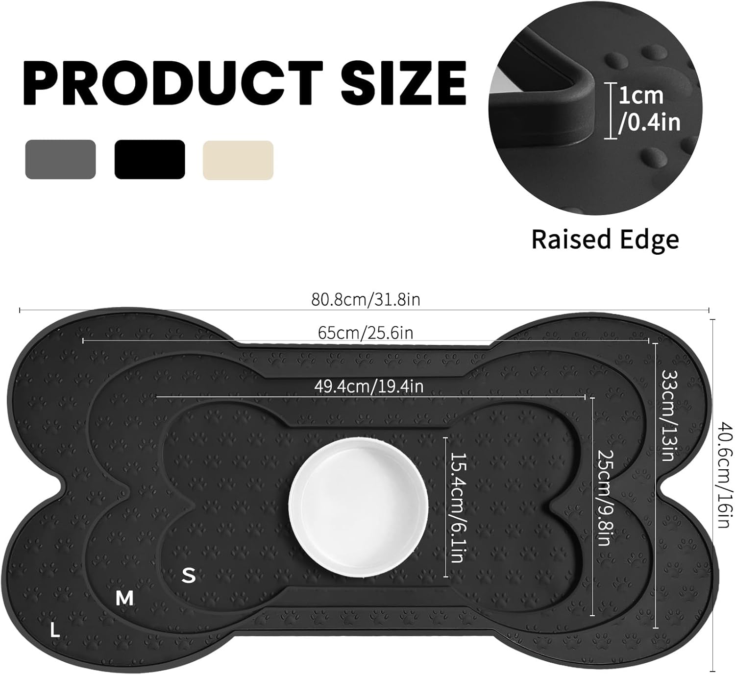 • Raised Edge - The high edge of this feeder mat keeps food and water within the tray and prevents spillage onto a clean floor. Keep your living space tidy and clean, say goodbye to messy floors, you just need to clean the dog bowl mat regularly.