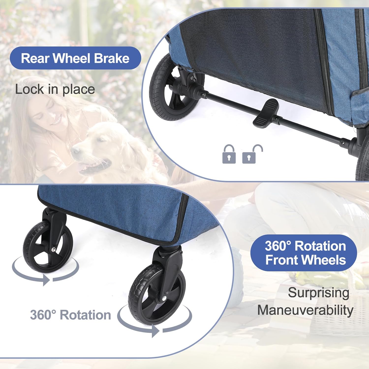 Large Dog Travel Stroller with 4 Heavy Duty Wheels Pet Stroller with Adjustable Handle - Double Doggie Capacity Jogger Wagon with Back Front Door for Small Medium Large Dogs (Navy-C)