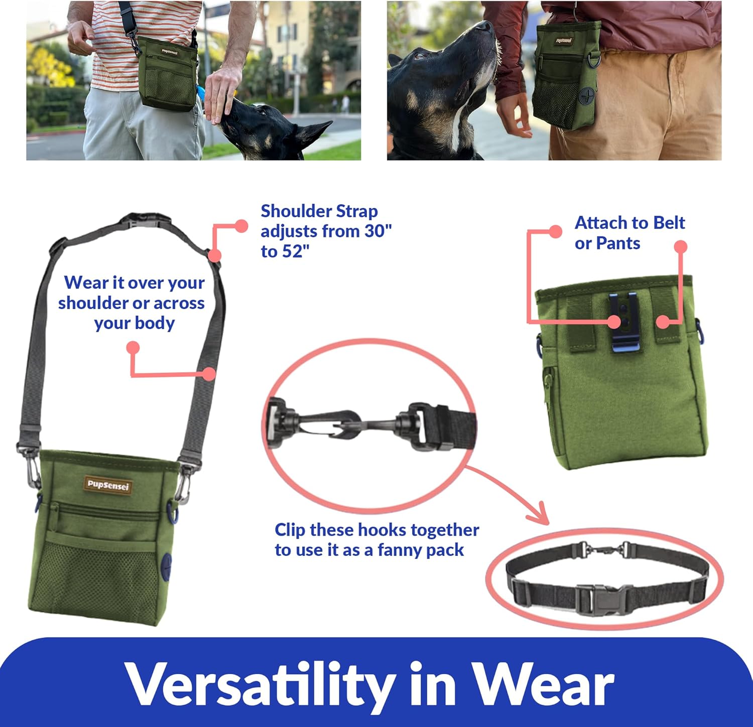 • Superior Quality Material: PupSensei dog treat bag is made of high-quality oxford polyester, ensuring durability and longevity. It is designed to withstand your pet's playful nature and your active lifestyle.