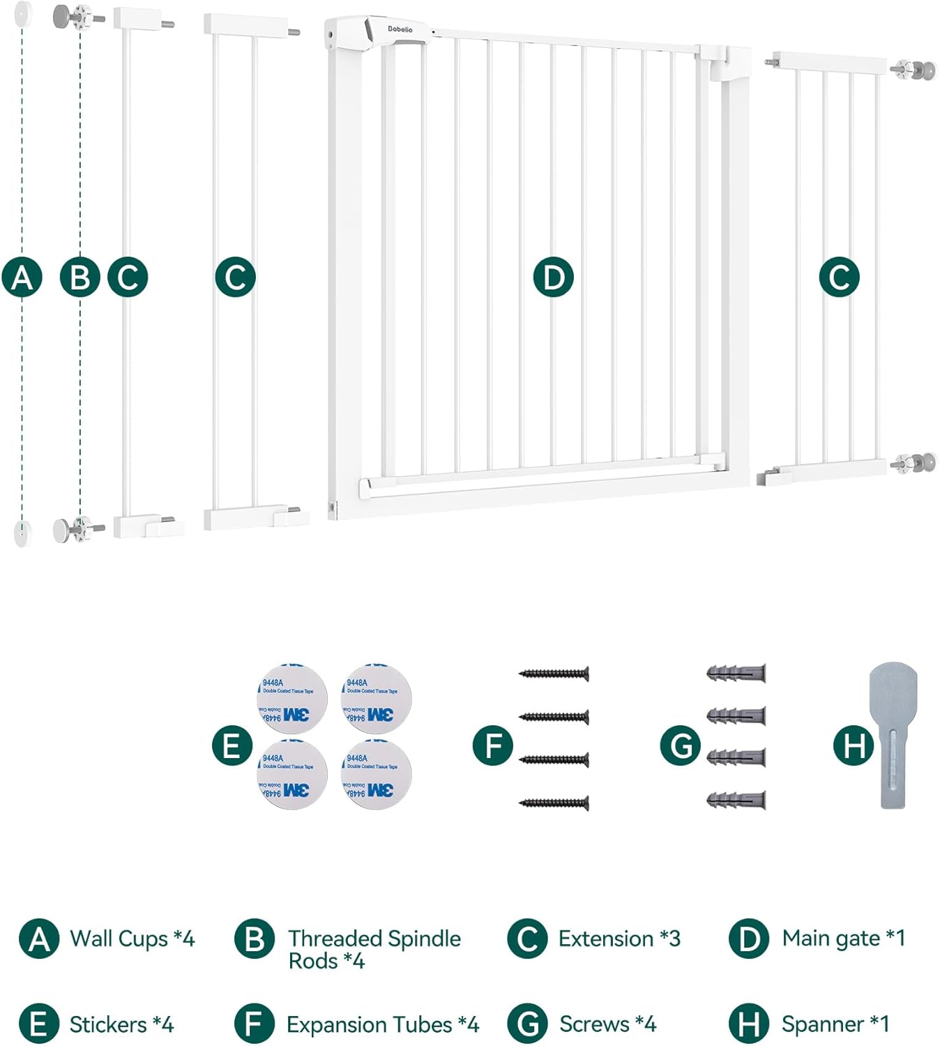 • EXTRA WIDE— The pet gate consists of a gate and 3 extensions. The maximum width is 57 Inch, while the minimum is 36 Inch, ideal for wide openings as well as stairs, hallways and doorways to protect children and pets.The main gate is widened to 29.5 inches, making it very convenient to pass through.