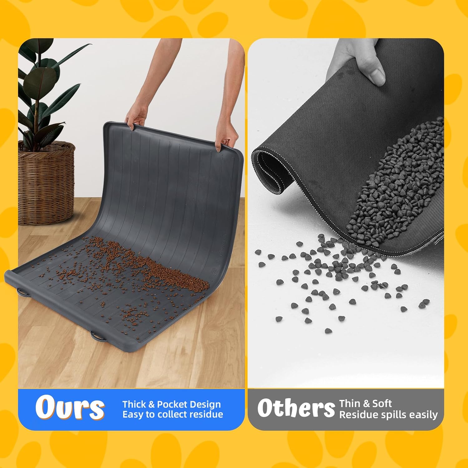 • EASY CLEANING WITH UNIQUE POCKET DESIGN: Say goodbye to messy floors with Yessotech's dog feeding mat! Our unique pocket design makes clean up a breeze. Simply pick up the mat from the other end and all the mess will fall into the pocket catch area.