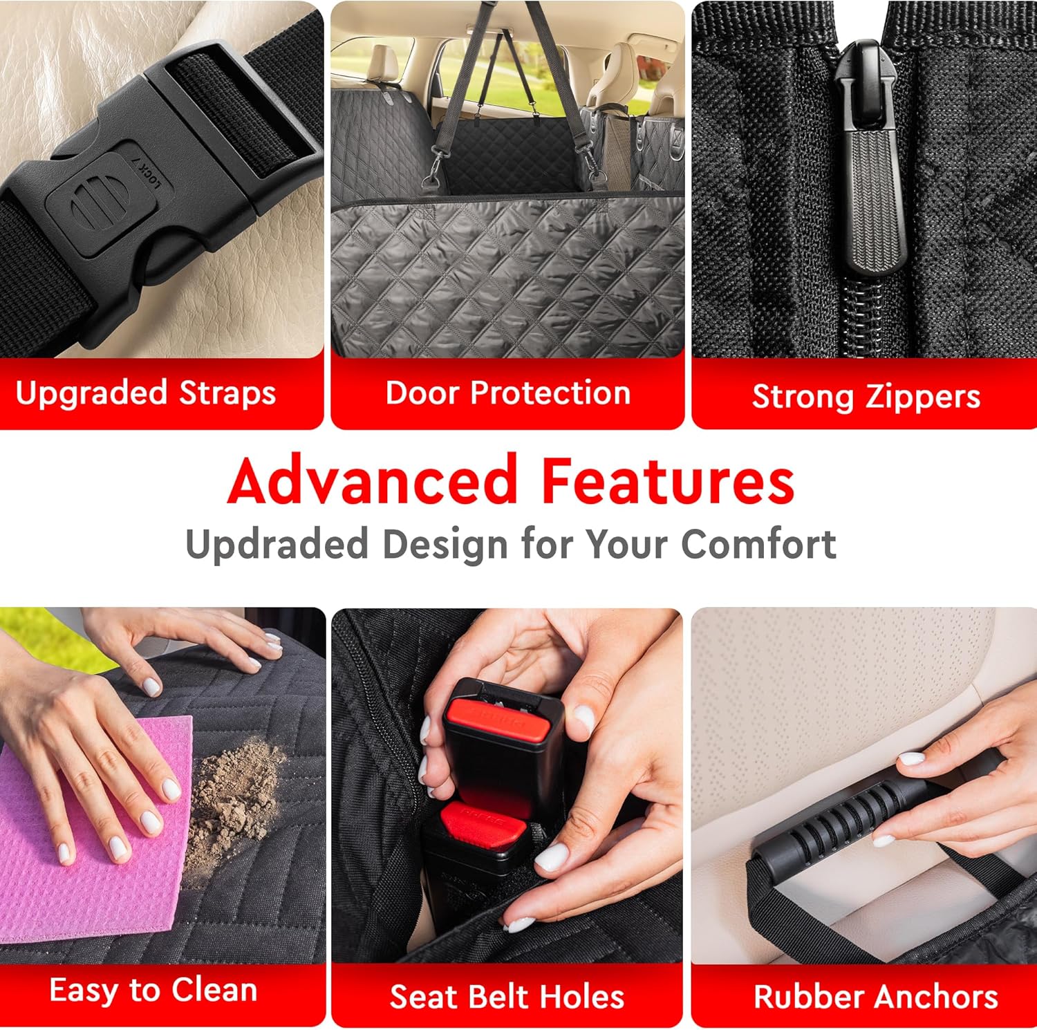 • Premium Quality - We used exceptionally waterproof material to make our dog seat cover more reliable and comfortable than others. Every part of the product was properly tested and upgraded several times. Long-lasting durability, supreme comfort, and unbeatable protection ensure your four-legged friend has a safe and convenient journey.