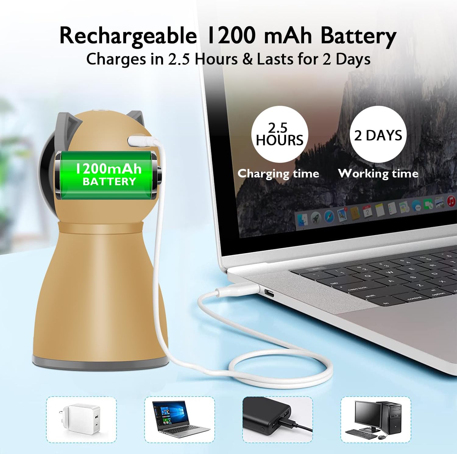• 【Built-in Rechargeable Battery】Equipped with a rechargeable battery that can be charged via USB cable, fully charged in 2.5 hours, and lasts for approximately 2 days of use