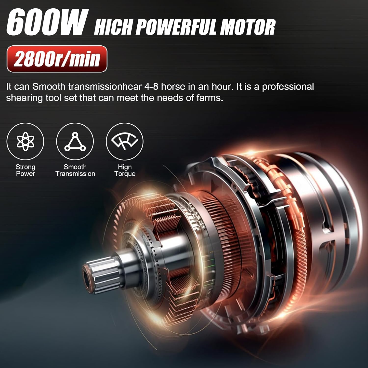 • 【Attention】When operating heavy-duty electric horse clippers, remember to lubricate the blades regularly. Avoid running the machine idle, as friction between blades can cause overheating. Use cooling spray every few minutes, take short breaks during shearing sessions, and promptly clean the blades to prevent overheating.