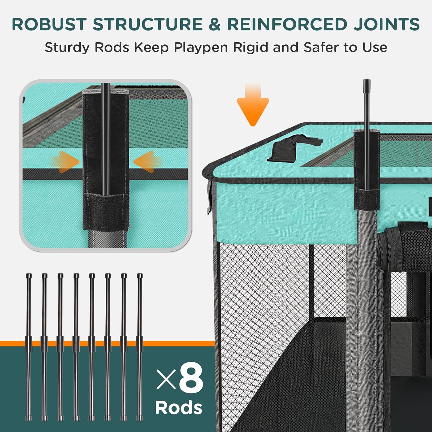• Easy to Clean: Waterproof play pen, the bottom of the dog playpen for small dogs is waterproof and can be maintained by immediately wiping any spills, or accidents. The dog crat can also be washed with water and quickly dried. A blanket can be placed in the playpen and easily removed for cleaning if soiled.