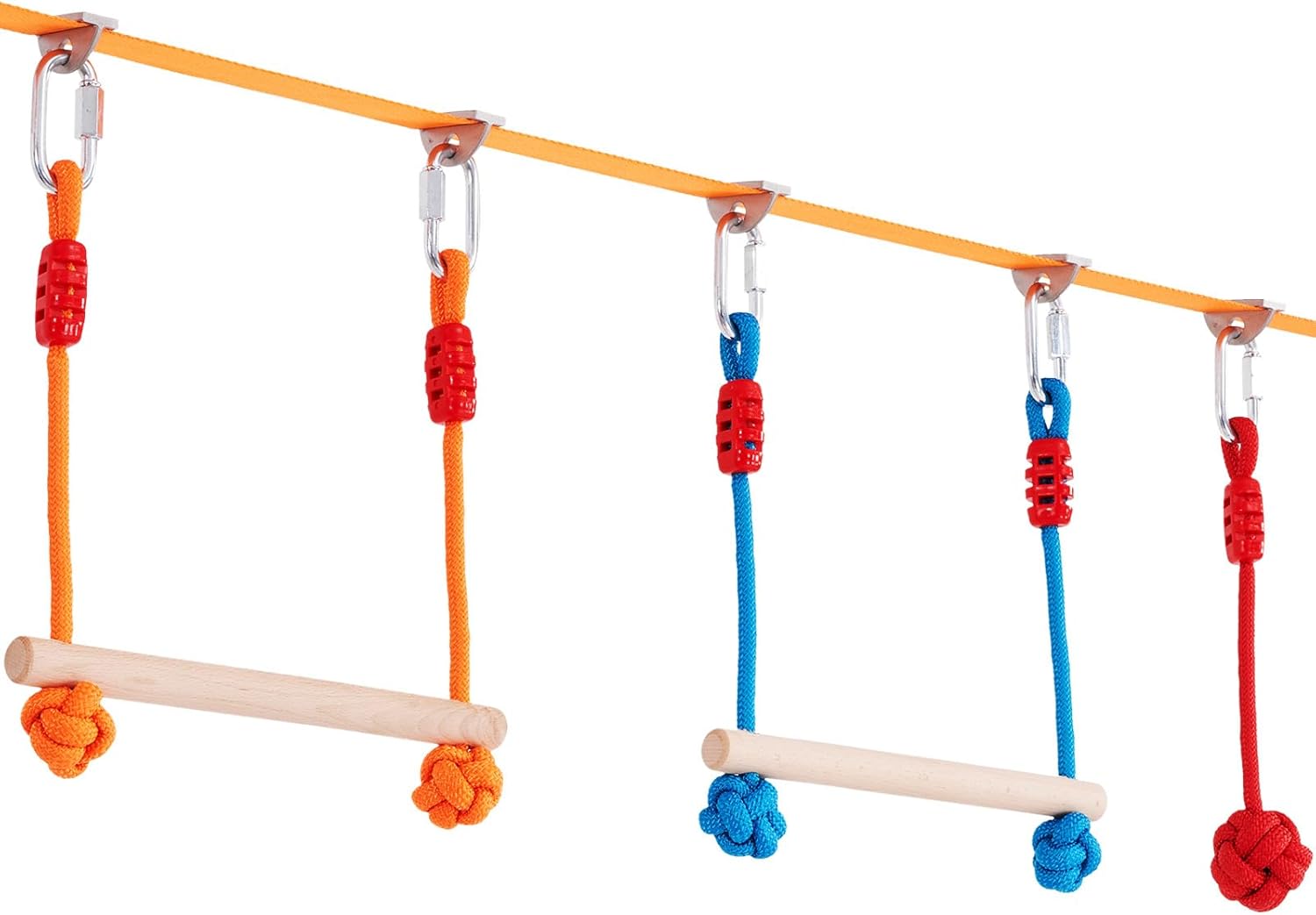 - Quick Installation and Disassembly: The outdoor playset equipment can be assembled in just 5 minutes. There's no need for a wide flat area in your yard; just fix it between two trees or poles 20 to 40 feet apart to start customizing your obstacle challenge game! It's an ideal alternative to traditional playgrounds, offering a convenient and flexible backyard challenge game for children of various ages and skill levels.