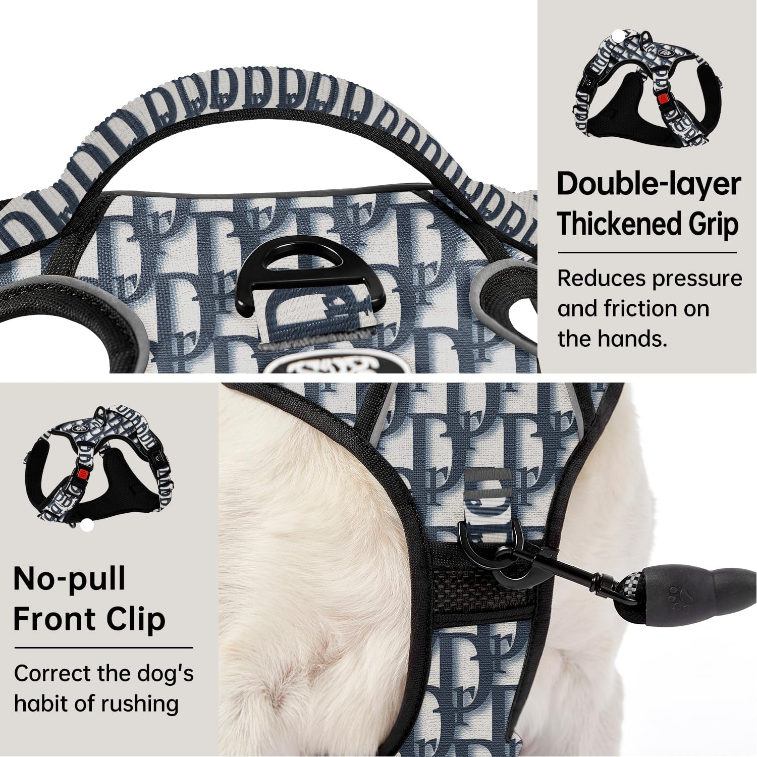 IVY&LANE No Pull Dog Harness with Leash Set, Reflective No Choke Pet Vest,Adjustable Oxford Dog Vest Harness with Easy Control Handle for Large Dogs (Vintage Blue,XL)