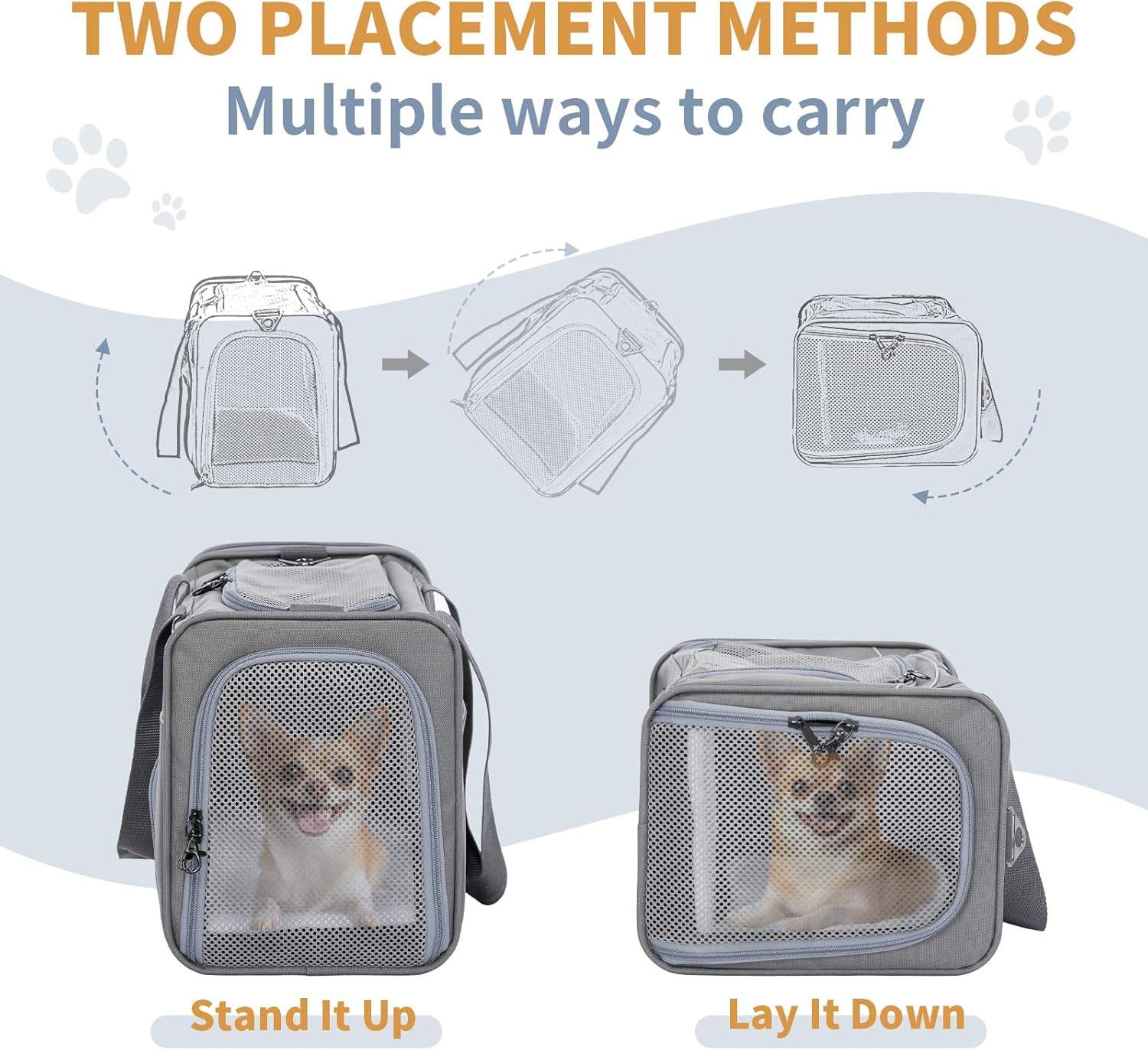 ‌Petsfit Airline Approved Pet Carrier for Small Dogs & Cats, 19x9x12 TSA Approved Carrier, with Removable Dual-Sided Padding (2-Way Placement) - Fits Under Most Airplane Seats, Escape Proof (Gray)
