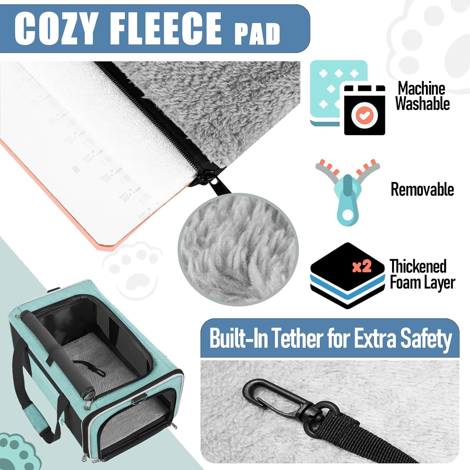 • Secured with auto-locking zippers, your pet can't escape easily by pushing against the zipper from the inside. An inner tether for extra safety. A reflective stripe on the side helps you feel at ease when you walking the dog at night