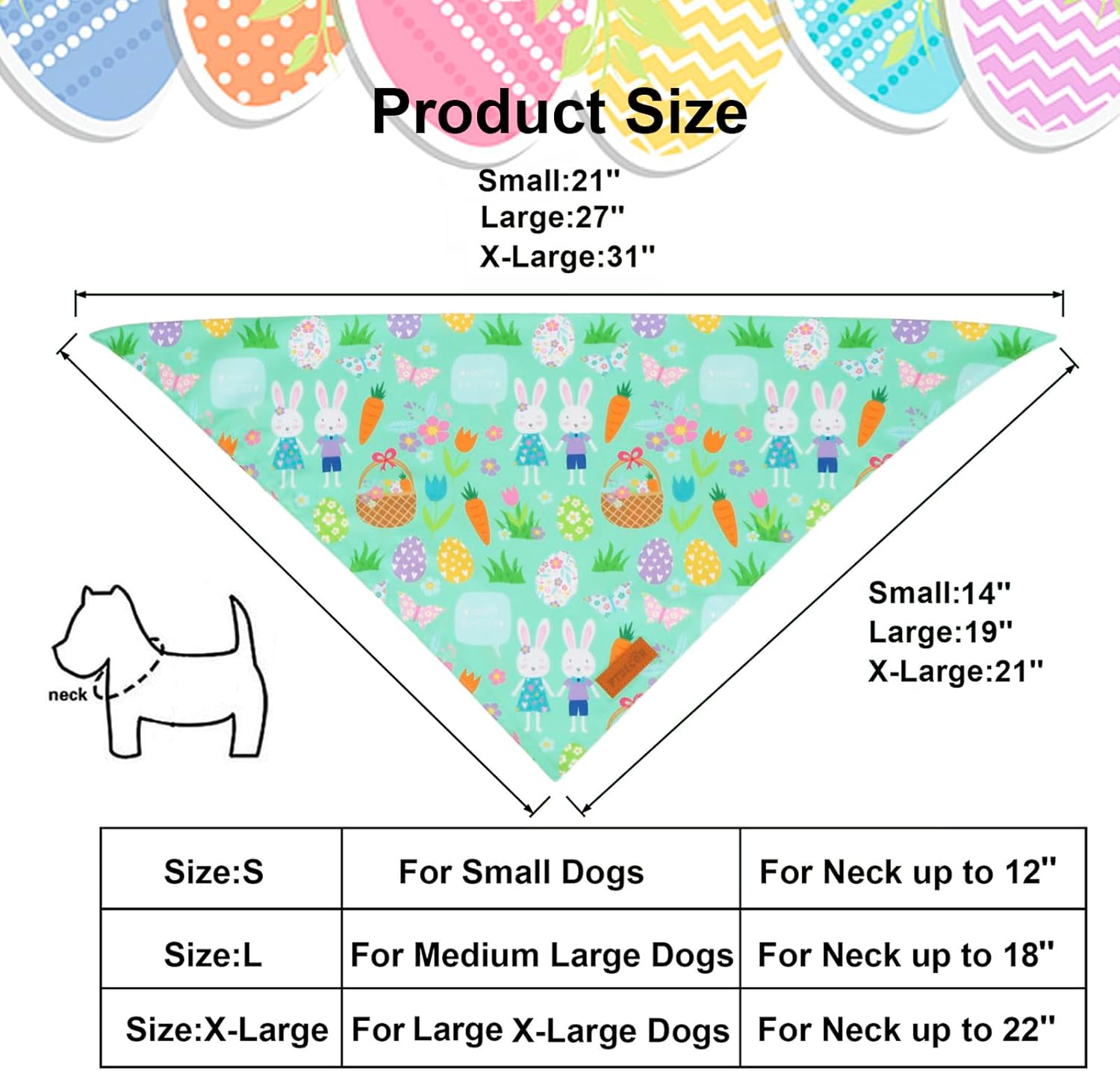 • 2 Pack Dog Bandanas: One package has two different style dog easter bandanas. Both bandanas were full of festival atmosphere, super cute and loved both by your boy and girl! Whether the character of your dog is lively or quiet, these bandanas will fit them all!