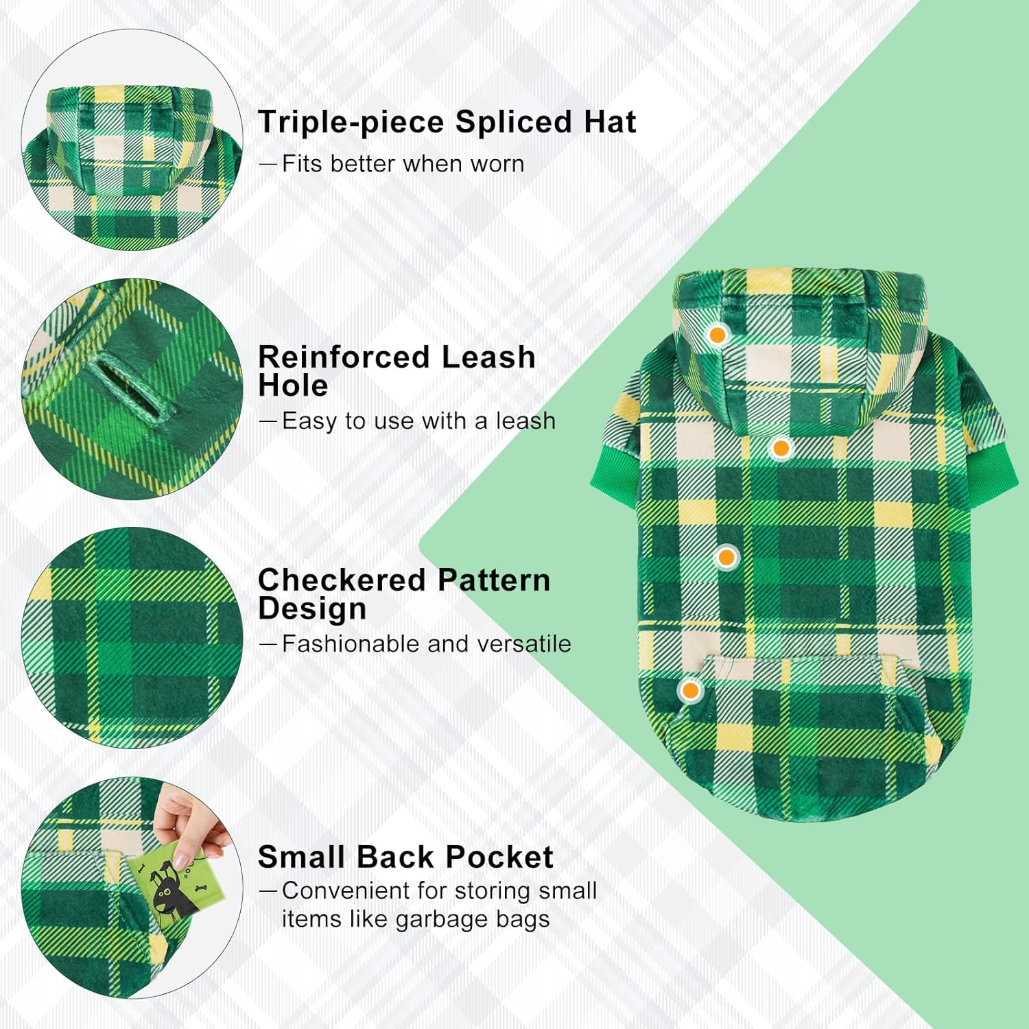 • Stylish & Practical Look: This plaid dog hoodie boasts a classic vintage check pattern that makes your pup stand out! Includes a handy back pocket for storing treats, toys, or waste bags. reinforced leash hole adds safety and durability—perfect for walks, running, hiking, training, or festive occasions like Christmas, Thanksgiving, photo shoots, and birthday parties.