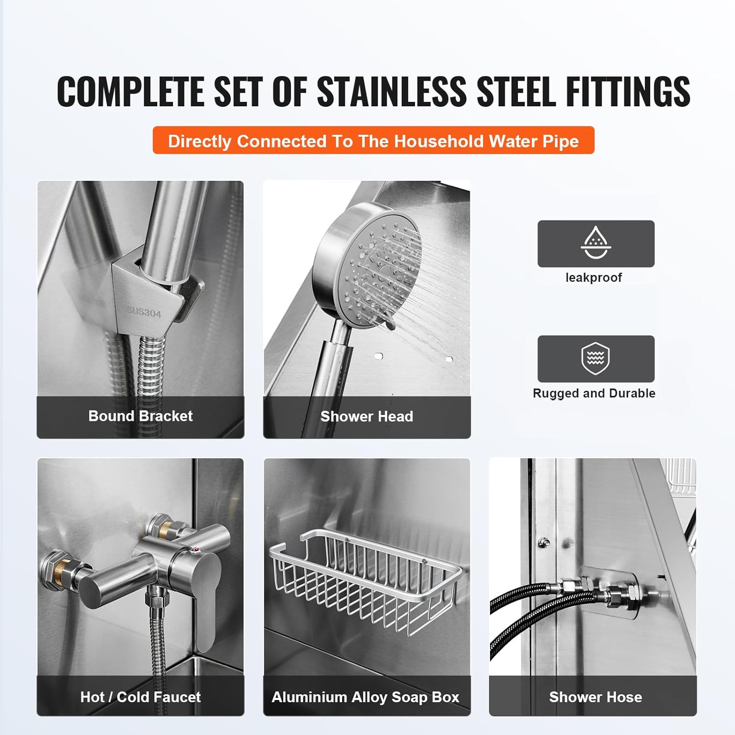 • Durable Stainless Steel Accessories: Our product includes a stainless steel showerhead, faucet, and bracket, all of which are rust-resistant and built to last. Additionally, we've included an aluminum alloy soapbox for long-term storage of bathing products, ensuring durability.