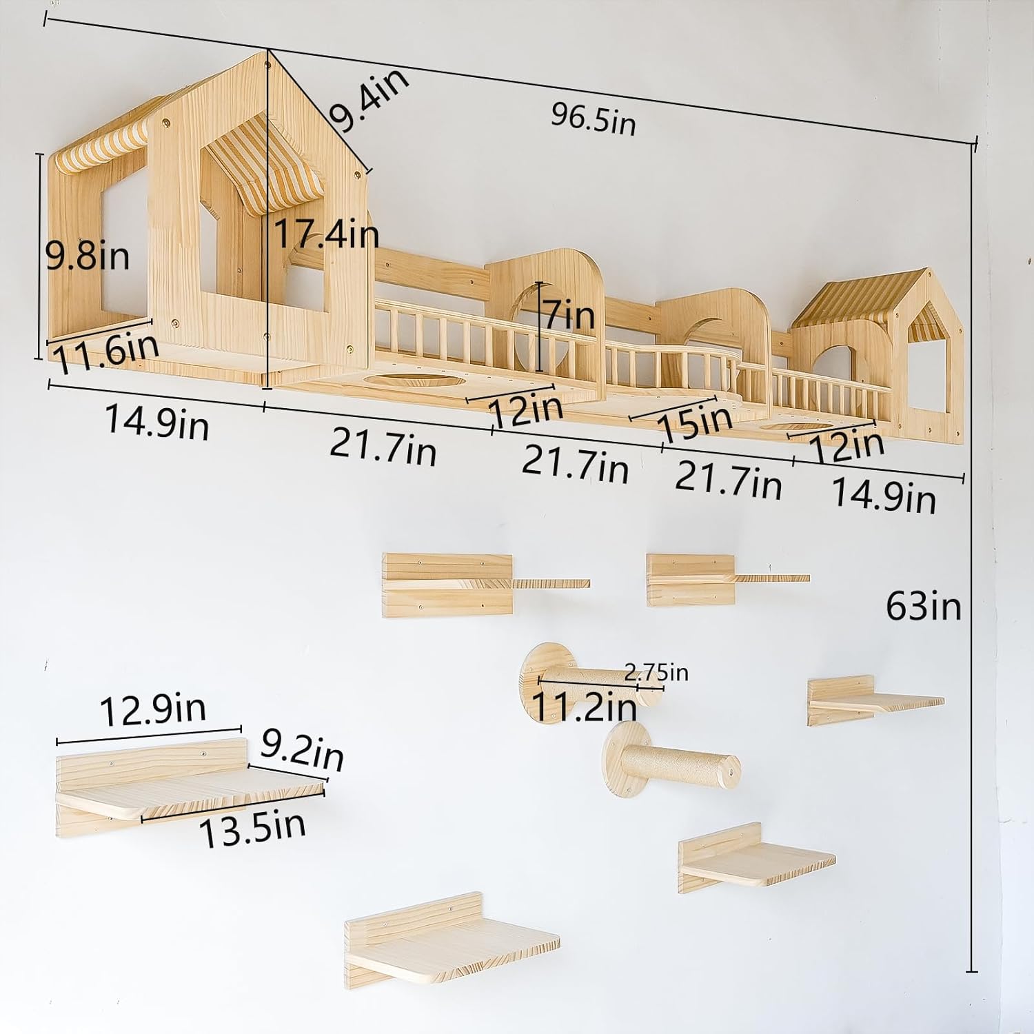 Cat Wall Shelves and Furniture Set with Condos, Perches, Bridge Ladders, Sisal Scratching Posts - Steps and Houses for Cats (D)