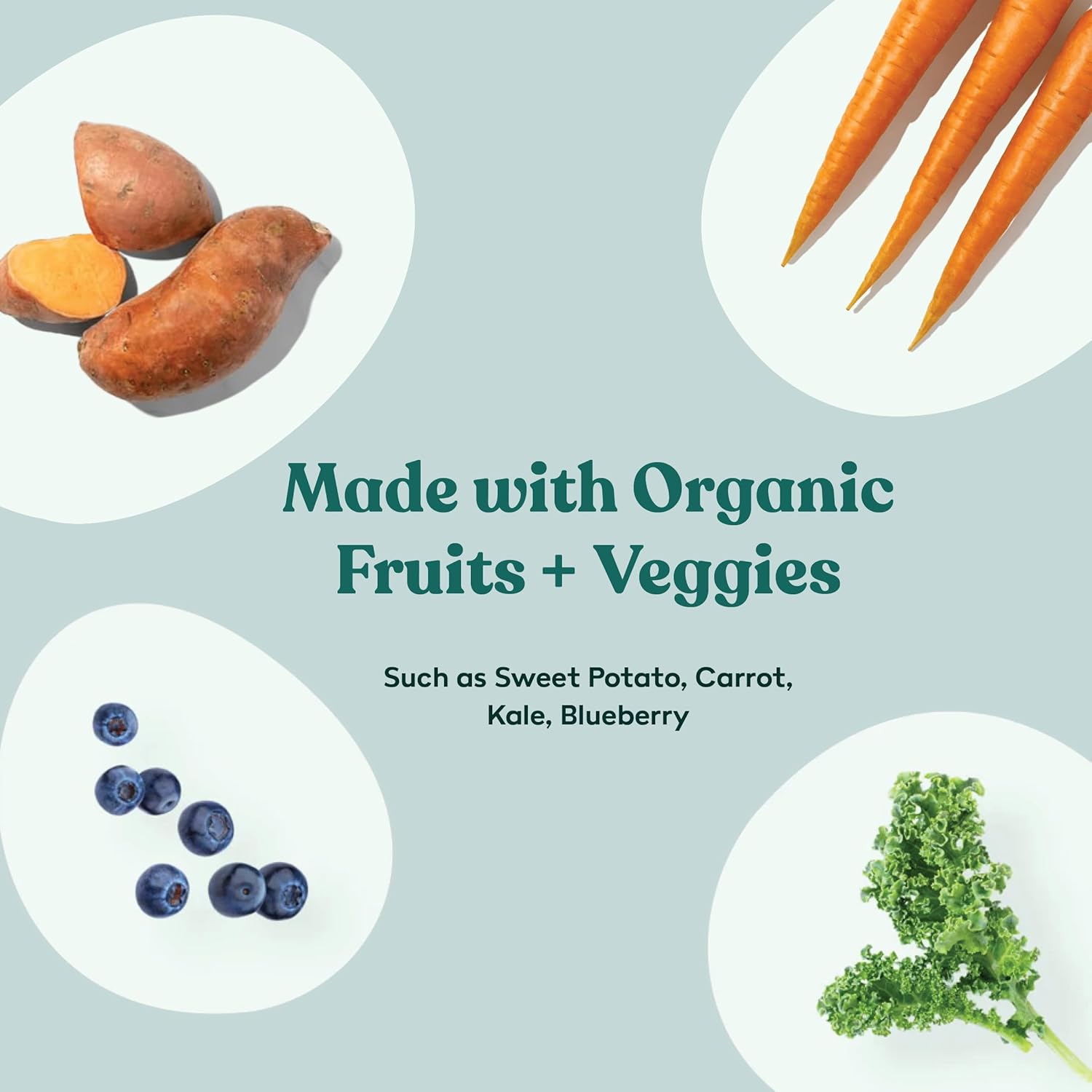 • 🥦 ORGANIC FRUITS & VEGGIES FOR FIBER: Packed with organic fruits and vegetables, like sweet potatoes, blueberries, and spinach, offering natural fiber, antioxidants, and digestive support. Helps maintain a healthy gut and immune system.