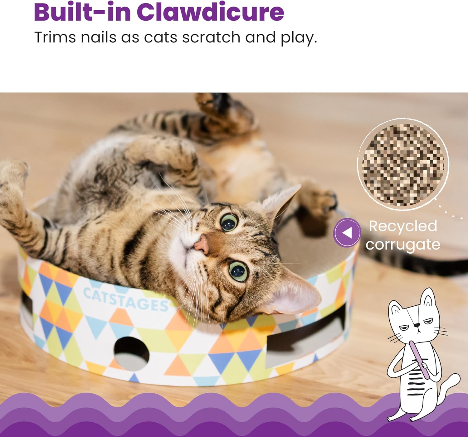 Catstages Bowl Track Scratcher Cat Ball-Track Toy, Corrugated Scratch, and Lounger All-in-One, Two Balls Included for Interactive Play, Multicolored