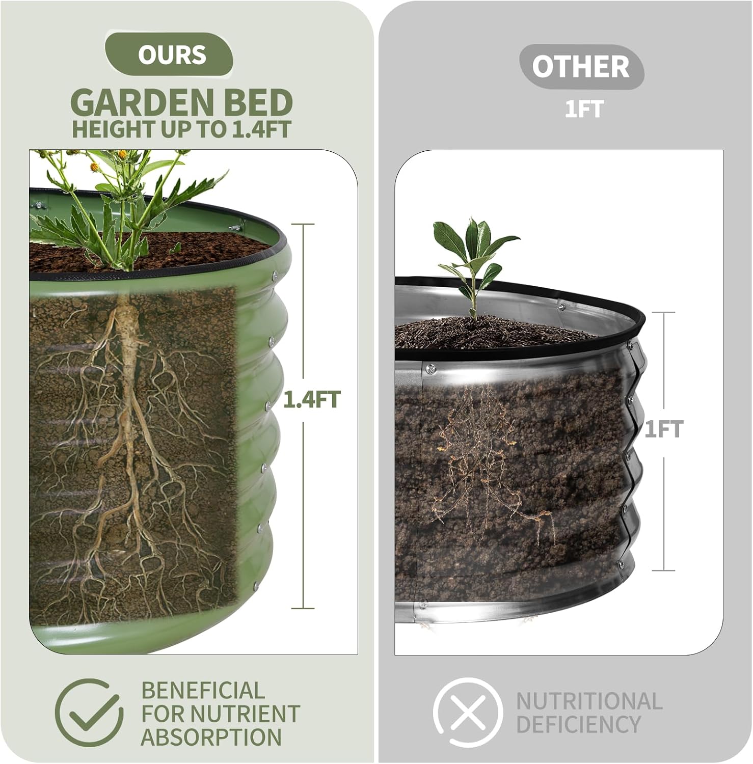 • 【Higher Height】The height of this planter garden bed is 1.4 ft, which is higher than other galvanized planter beds suitable for the growth of deep rooted plants. Higher heights are very knee friendly. When standing, you can easily pick vegetables with your arms.Make your planting life more relaxed and enjoyable