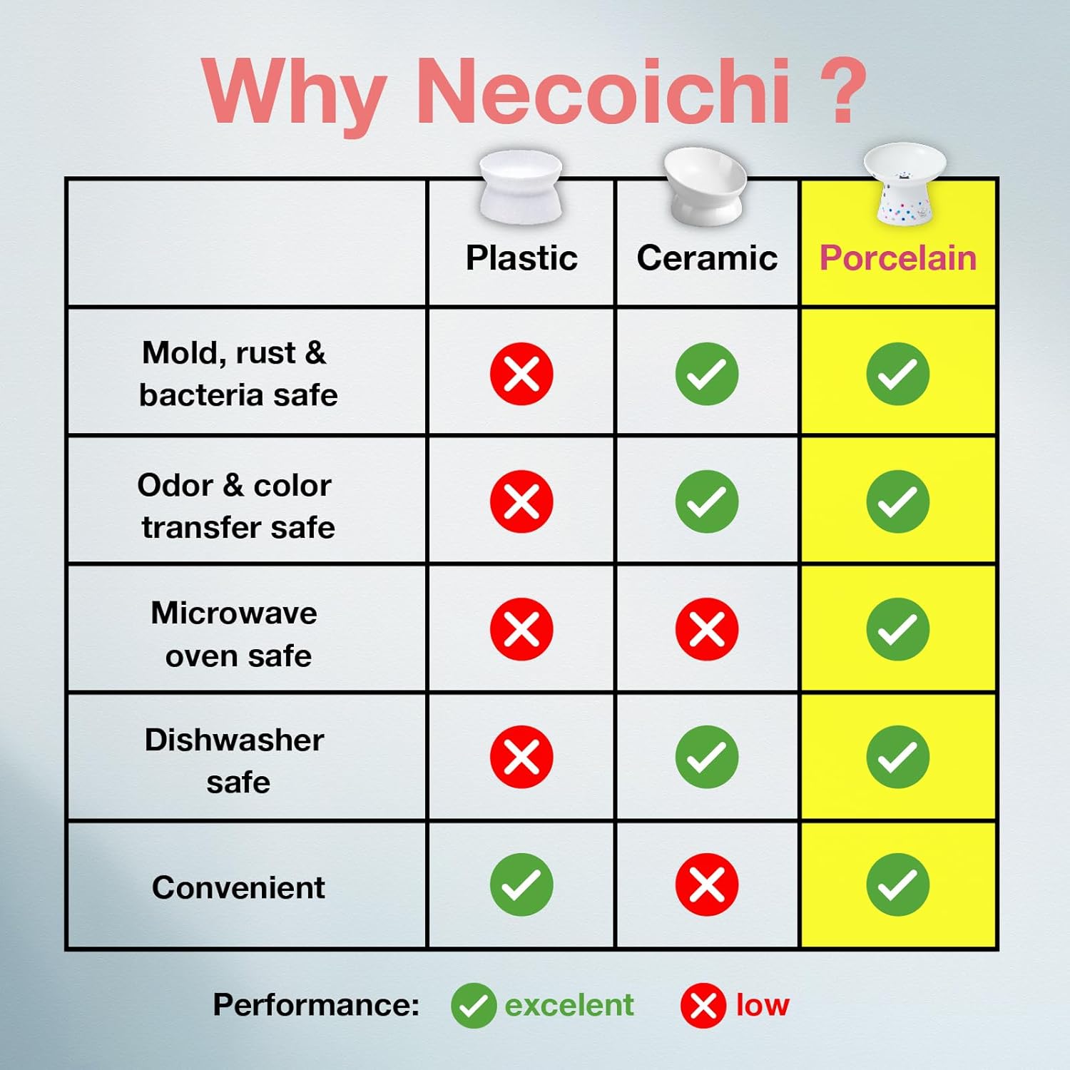 Necoichi Extra Wide Raised Cat Food Bowl, Elevated, Prevent Neck & Whisker Fatigue, Dishwasher and Microwave Safe, No.1 Seller in Japan! (Colorful Dots Limited Edition, Extra Wide Tilted)