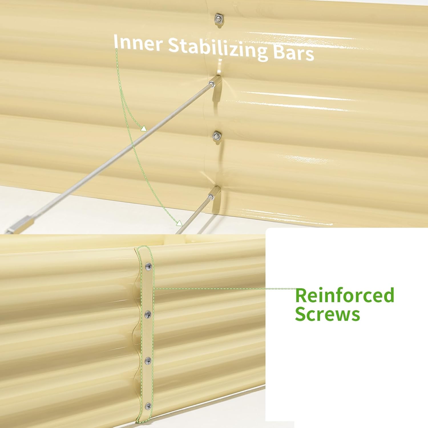 • Stable and Solid Construction: Double card frames on the two sides of the sheet make the raised garden kits more durable and stable, and 4 reinforcing rods make the whole raised garden bed more stable. Never worry about its distortion or collapse and it presents a much more beautiful design.