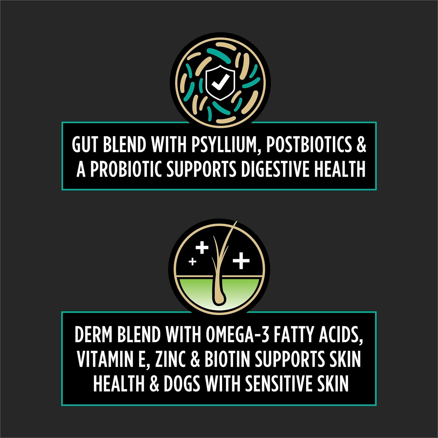 • Contains a prebiotic, probiotic, postbiotic blend to provide digestive and immune system support for dogs
