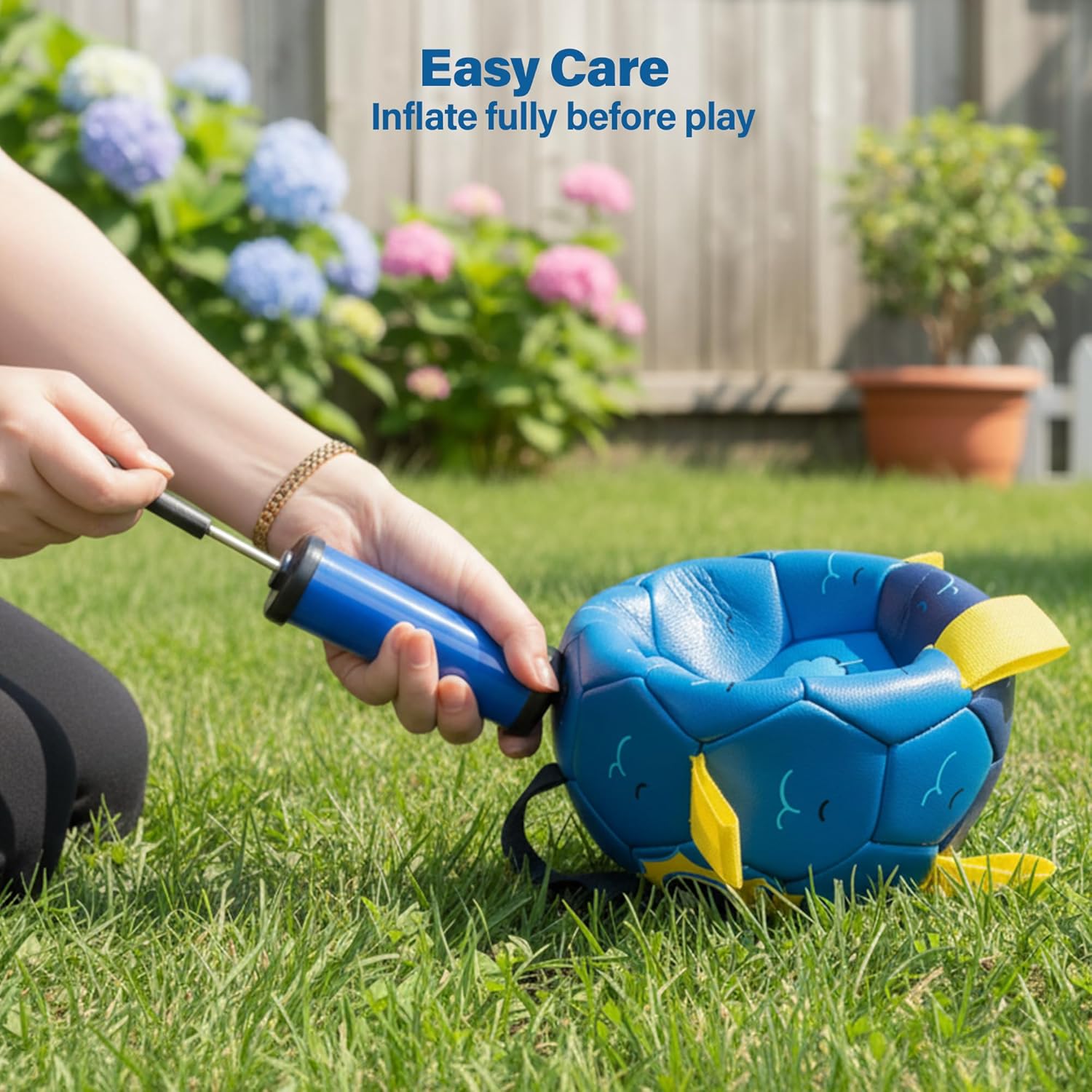 • Versatile Floating Design – Unique dog soccer ball with straps inspired by jolly pets soccer ball. This floating dog ball works on land and in water. Use as a dog ball with tags for pool games, lake play, or backyard fetch.