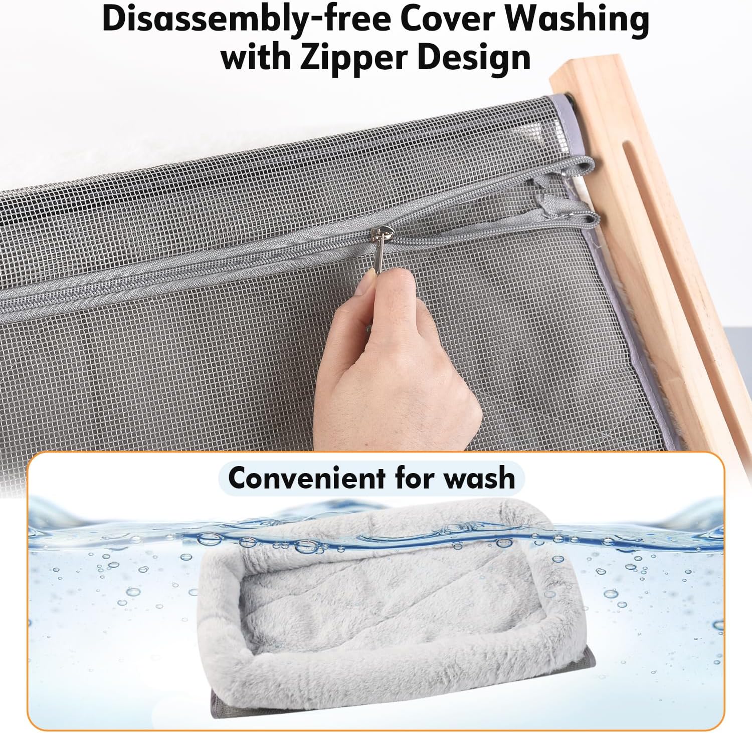 • No Drilling & Suction Cups Needer for Installation: This cat bed is fixed on the carrier by two metal hook and supported by two wooden supports, without the need to damage the wall and the worry of the suction cups falling off. The metal hooks are widened. The contact surface with the windowsill is larger that protects your window from being damaged by the concentrated force.
